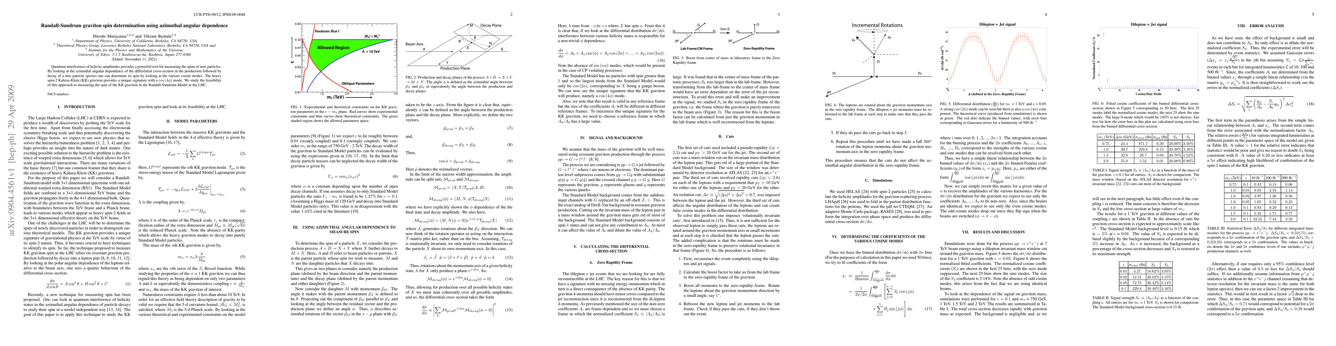 The paper introduces a novel approach to determine the spin of the Randall-Sundrum KK graviton by analyzing the azimuthal angular dependence of the differential cross-section in pp→G+jet→l+l− processes, providing a unique cos(4φ) mode signature.