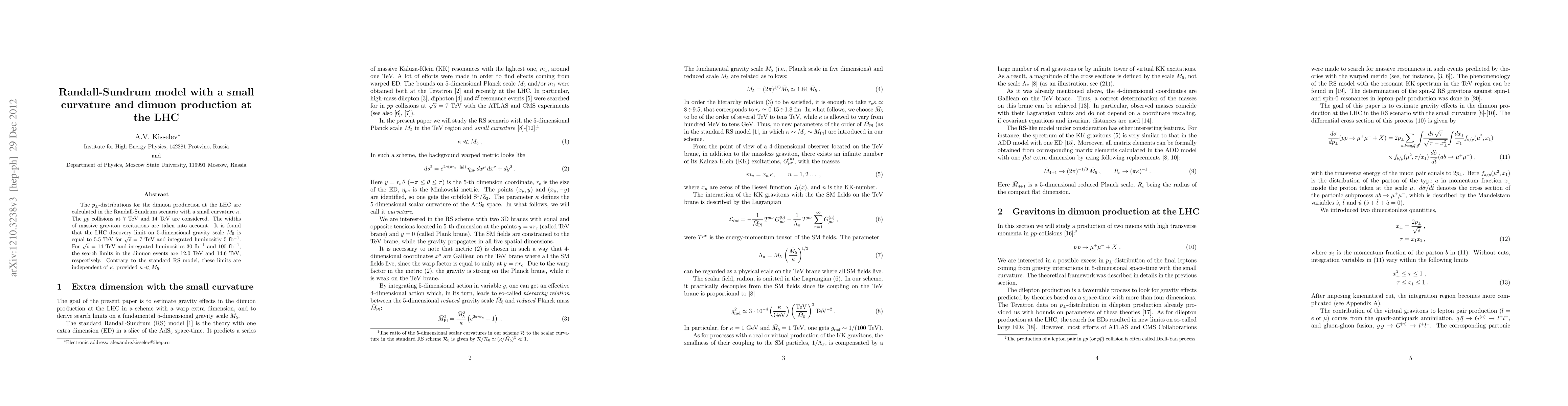 This paper calculates dimuon production $p_{\perp}$-distributions in the Randall-Sundrum model with a small curvature $\kappa$ at the LHC, finding that the 5-dimensional gravity scale $M_5$ discovery limits are 5.5 TeV at 7 TeV and 12.0 TeV at 14 TeV, independent of $\kappa$ when $\kappa \ll M_5$.