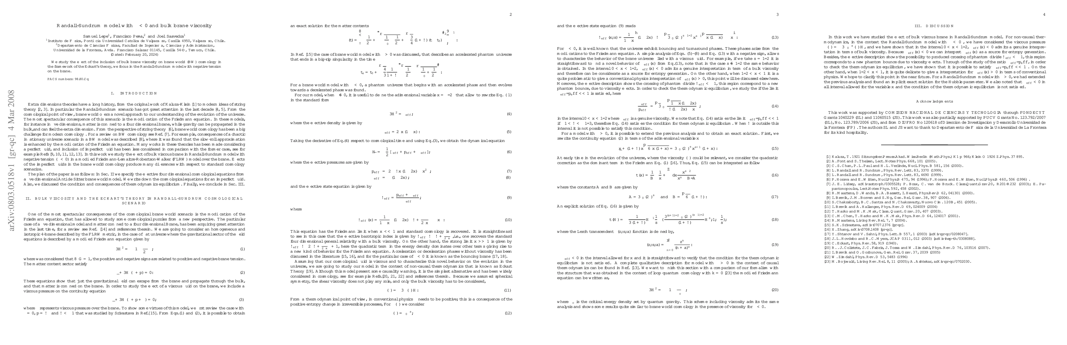 This paper investigates the impact of bulk brane viscosity within the Randall-Sundrum model featuring a negatively tensioned brane, employing Eckart's theory to explore the implications for brane world cosmology. The results reveal novel dynamics influenced by the inclusion of viscosity.