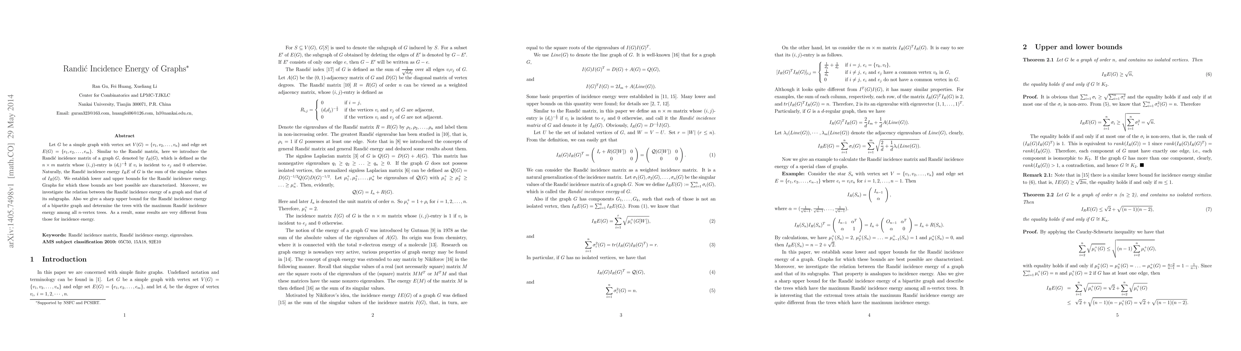 This paper introduces the Randi\'c incidence matrix and its associated energy for graphs, establishing bounds and characterizing graphs where these bounds are optimal. It also explores the relationship between the Randi\'c incidence energy of a graph and its subgraphs, and determines the maximum Randi\'c incidence energy for bipartite graphs and specific trees.
