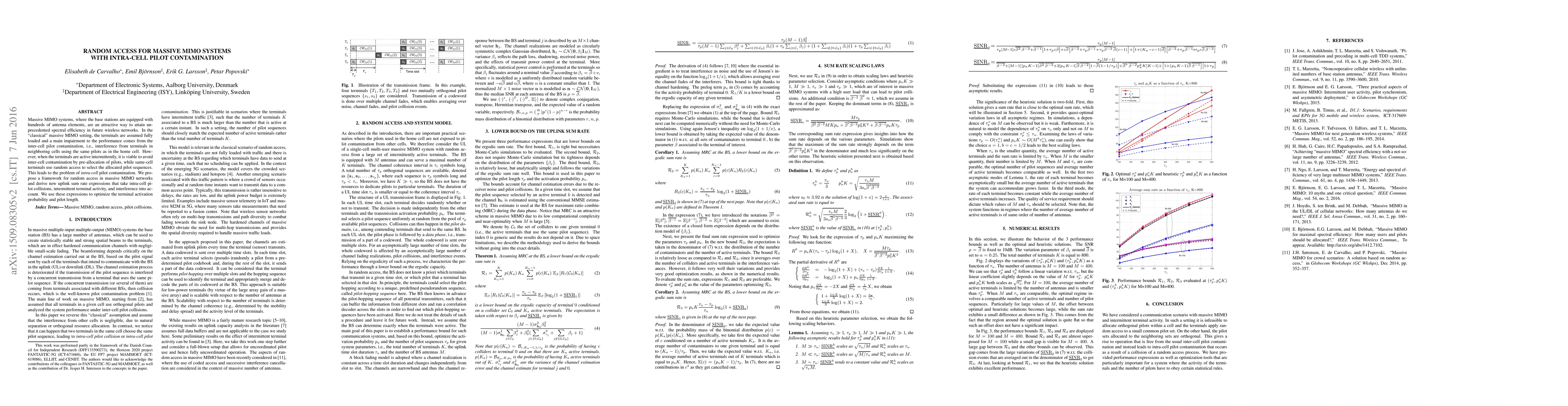 This paper proposes a framework for random access in massive MIMO systems to address intra-cell pilot contamination when terminals are intermittently active. It derives new uplink sum rate expressions and optimizes terminal activation probability and pilot length to enhance spectral efficiency.
