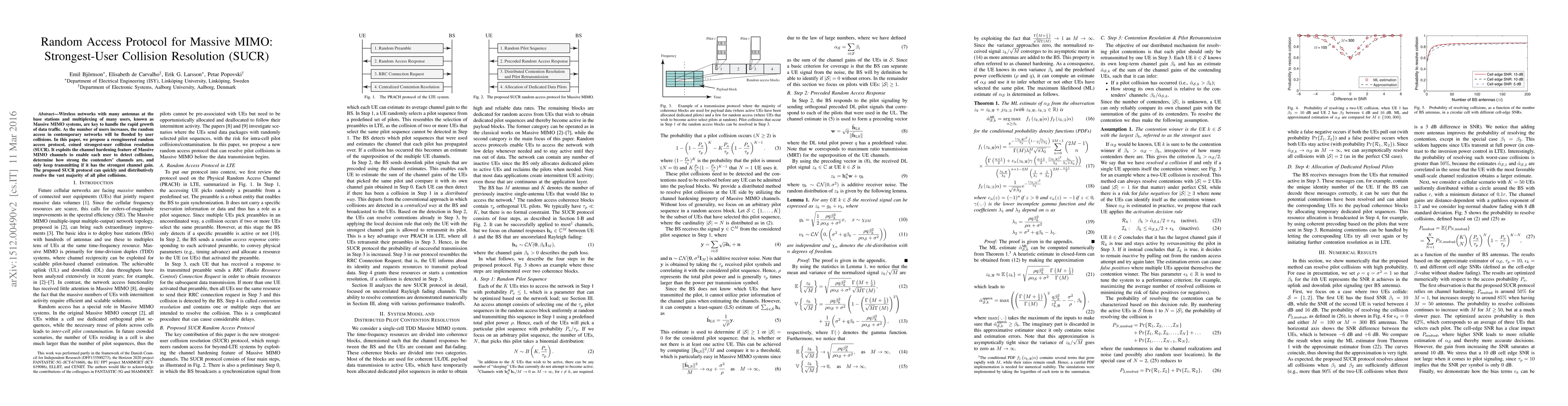 This paper proposes a novel random access protocol called Strongest-User Collision Resolution (SUCR) for Massive MIMO systems to address user collisions. SUCR leverages channel hardening to enable users to detect and resolve collisions based on channel strength, efficiently resolving most pilot collisions.
