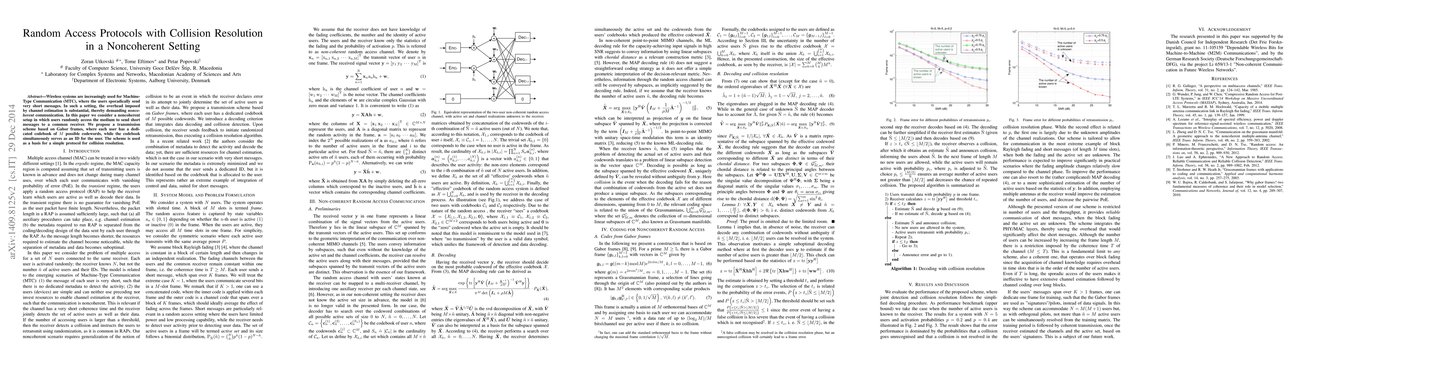 Researchers propose a noncoherent communication scheme using Gabor frames for Machine-Type Communication, enabling efficient collision resolution in wireless systems with short messages.