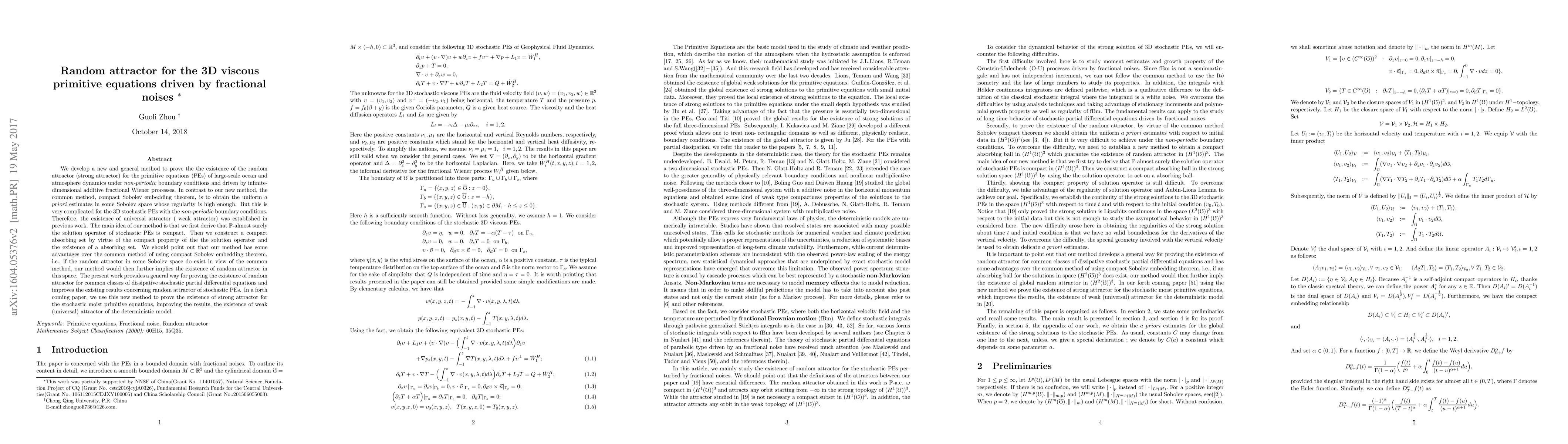We develop a new and general method to prove the the existence of the random attractor (strong attractor) for the primitive equations (PEs) of large-scale ocean and atmosphere dynamics under $non$-$periodic$ boundary conditions and driven by infinite-dimensional additive fractional Wiener processes. In contrast to our new method, the common method, compact Sobolev embedding theorem, is to obtain the uniform $a$ $priori$ estimates in some Sobolev space whose regularity is high enough. But this is very complicated for the 3D stochastic PEs with the $non$-$periodic$ boundary conditions. Therefore, the existence of universal attractor ( weak attractor) was established in previous work. The main idea of our method is that we first derive that $\mathbb{P}$-almost surely the solution operator of stochastic PEs is compact. Then we construct a compact absorbing set by virtue of the compact property of the the solution operator and the existence of a absorbing set. We should point out that our method has some advantages over the common method of using compact Sobolev embedding theorem, i.e., if the random attractor in some Sobolev space do exist in view of the common method, our method would then further implies the existence of random attractor in this space. The present work provides a general way for proving the existence of random attractor for common classes of dissipative stochastic partial differential equations and improves the existing results concerning random attractor of stochastic PEs. In a forth coming paper, we use this new method to prove the existence of strong attractor for the stochastic moist primitive equations, improving the results, the existence of weak (universal) attractor of the deterministic model.