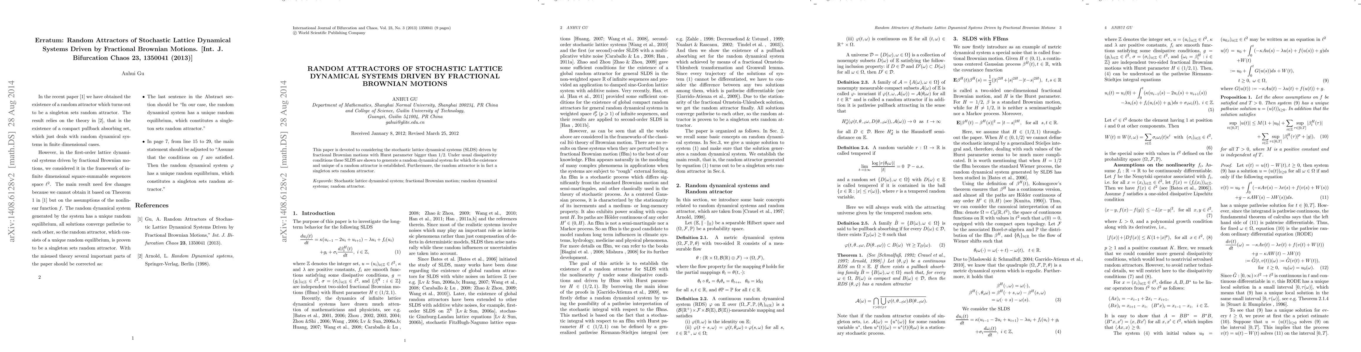 This paper is devoted to considering the stochastic lattice dynamical systems (SLDS) driven by fractional Brownian motions with Hurst parameter bigger than $1/2$. Under usual dissipativity conditions these SLDS are shown to generate a random dynamical system for which the existence and unique of a random attractor is established. Furthermore, the random attractor is in fact a singleton sets random attractor. Next, we give an erratum because of the misused theory.