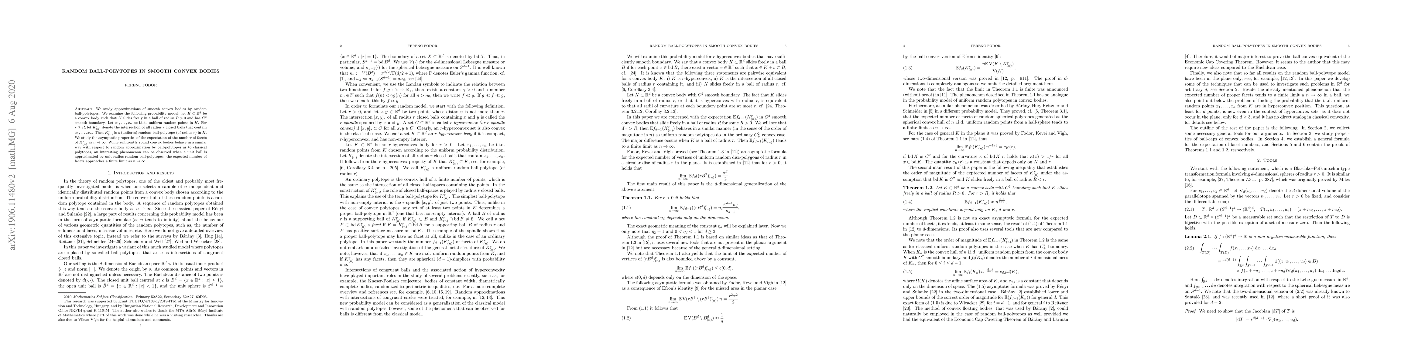 This paper investigates the approximations of smooth convex bodies using random ball-polytopes, focusing on the number of facets in the random polytope as the number of sample points increases. It finds that while round convex bodies follow typical polytope approximation trends, the unit ball has a unique behavior where the expected number of facets converges to a finite limit as the sample size grows.