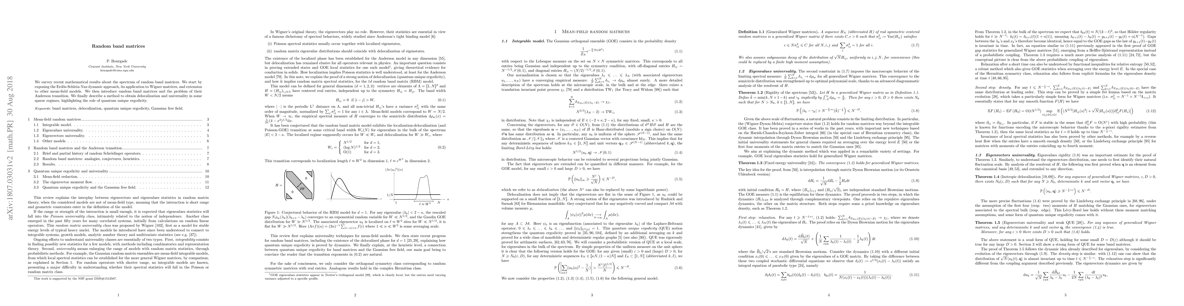 We survey recent mathematical results about the spectrum of random band matrices. We start by exposing the Erd{\H o}s-Schlein-Yau dynamic approach, its application to Wigner matrices, and extension to other mean-field models. We then introduce random band matrices and the problem of their Anderson transition. We finally describe a method to obtain delocalization and universality in some sparse regimes, highlighting the role of quantum unique ergodicity.