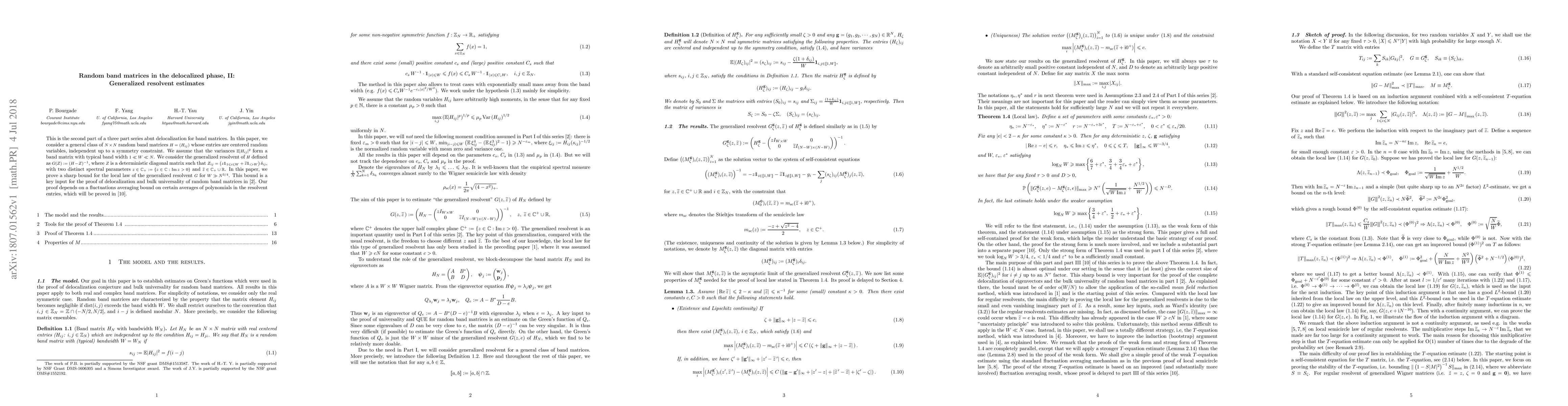This is the second part of a three part series abut delocalization for band matrices. In this paper, we consider a general class of $N\times N$ random band matrices $H=(H_{ij})$ whose entries are centered random variables, independent up to a symmetry constraint. We assume that the variances $\mathbb E |H_{ij}|^2$ form a band matrix with typical band width $1\ll W\ll N$. We consider the generalized resolvent of $H$ defined as $G(Z):=(H - Z)^{-1}$, where $Z$ is a deterministic diagonal matrix such that $Z_{ij}=\left(z 1_{1\leq i \leq W}+\widetilde z 1_{ i > W} \right) \delta_{ij}$, with two distinct spectral parameters $z\in \mathbb C_+:=\{z\in \mathbb C:{\rm Im} z>0\}$ and $\widetilde z\in \mathbb C_+\cup \mathbb R$. In this paper, we prove a sharp bound for the local law of the generalized resolvent $G$ for $W\gg N^{3/4}$. This bound is a key input for the proof of delocalization and bulk universality of random band matrices in \cite{PartI}. Our proof depends on a fluctuations averaging bound on certain averages of polynomials in the resolvent entries, which will be proved in \cite{PartIII}.
