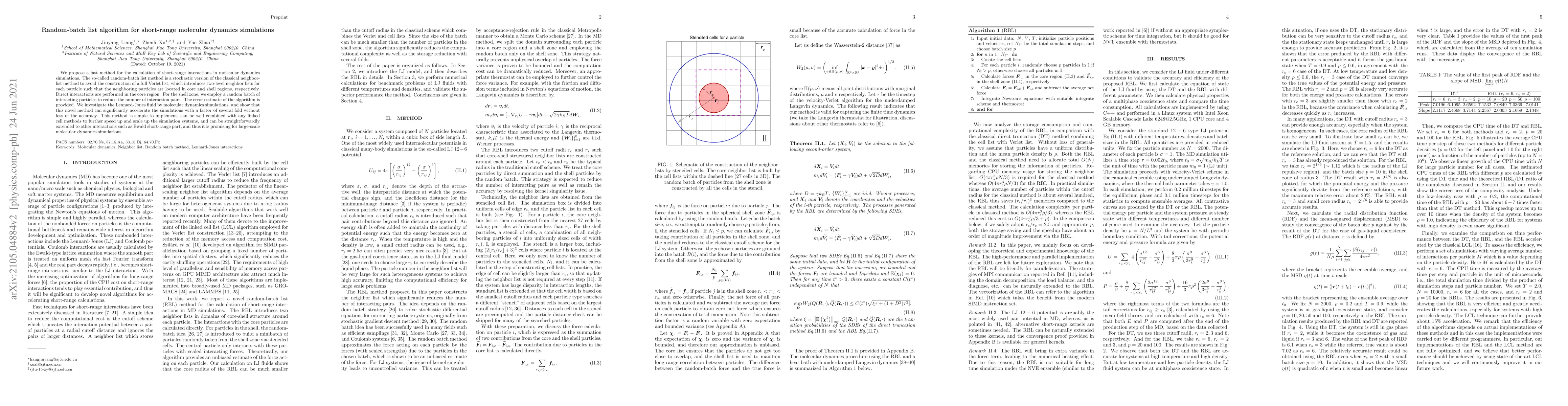 The paper proposes a random-batch list algorithm for fast short-range interaction calculations in molecular dynamics simulations, significantly accelerating simulations without compromising accuracy. It combines core region direct interactions with a shell zone random batch approach to reduce computational load, showing promising scalability for large-scale simulations.
