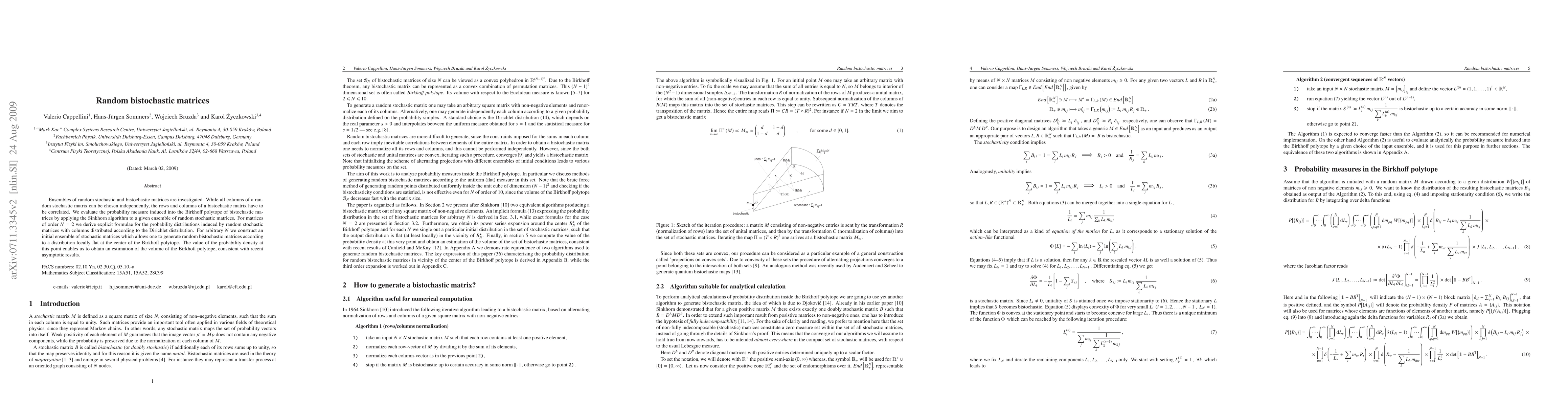 This paper investigates ensembles of random stochastic and bistochastic matrices, focusing on the probability measure induced in the Birkhoff polytope by applying the Sinkhorn algorithm. For $N=2$, explicit formulae for the probability distributions of random stochastic matrices are derived, while for larger $N$, a method is constructed to generate random bistochastic matrices, enabling an estimation of the Birkhoff polytope's volume.