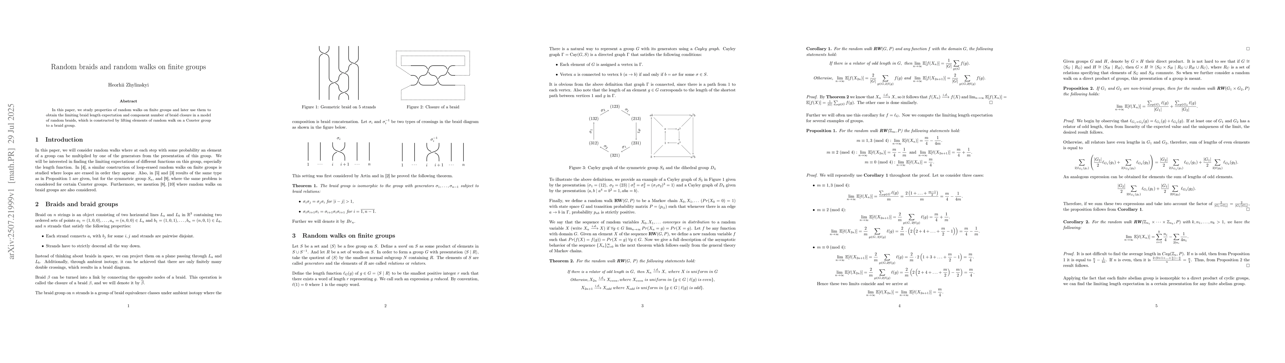 The paper extends previous work on random walks by connecting them to braid groups and providing specific results for direct products of finite groups, along with detailed analysis for cyclic groups.