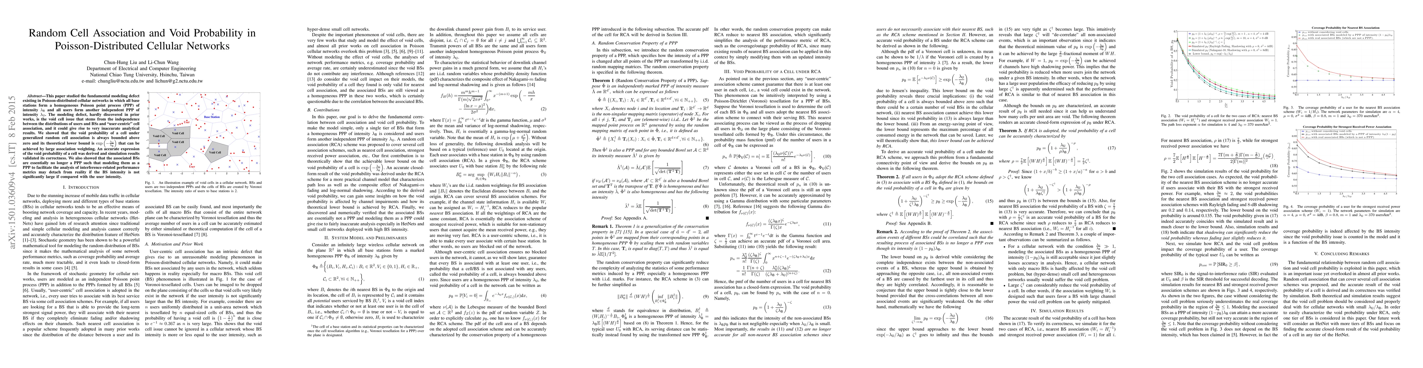 This paper studied the fundamental modeling defect existing in Poisson-distributed cellular networks in which all base stations form a homogeneous Poisson point process (PPP) of intensity $\lambda_B$ and all users form another independent PPP of intensity $\lambda_U$. The modeling defect, hardly discovered in prior works, is the void cell issue that stems from the independence between the distributions of users and BSs and "user-centric" cell association, and it could give rise to very inaccurate analytical results. We showed that the void probability of a cell under generalized random cell association is always bounded above zero and its theoretical lower bound is $\exp(-\frac{\lambda_U}{\lambda_B})$ that can be achieved by large association weighting. An accurate expression of the void probability of a cell was derived and simulation results validated its correctness. We also showed that the associated BSs are essentially no longer a PPP such that modeling them as a PPP to facilitate the analysis of interference-related performance metrics may detach from reality if the BS intensity is not significantly large if compared with the user intensity.