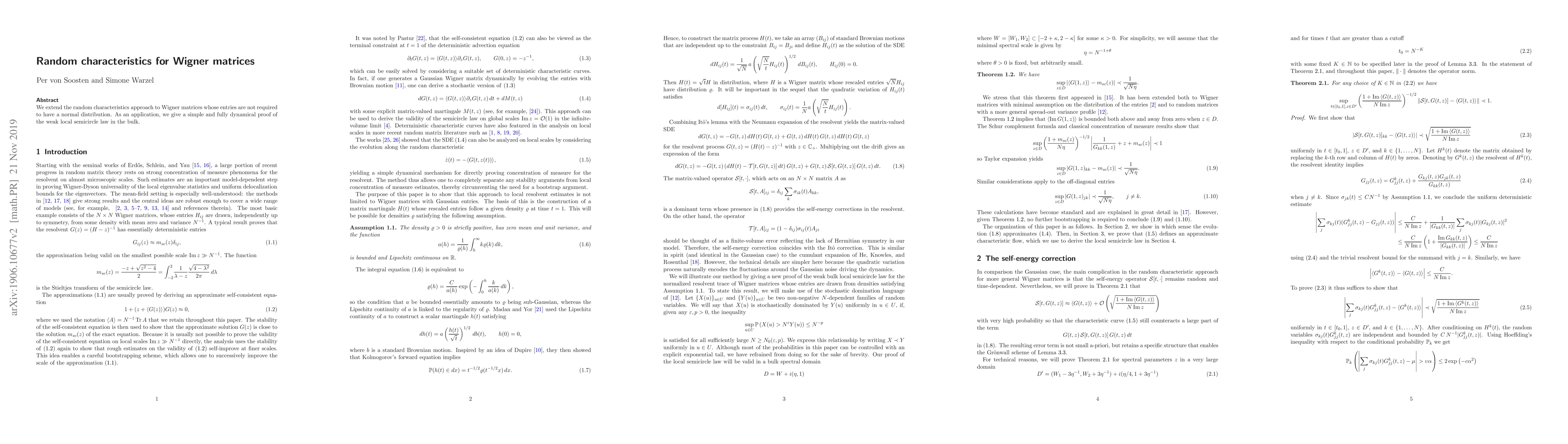 We extend the random characteristics approach to Wigner matrices whose entries are not required to have a normal distribution. As an application, we give a simple and fully dynamical proof of the weak local semicircle law in the bulk.
