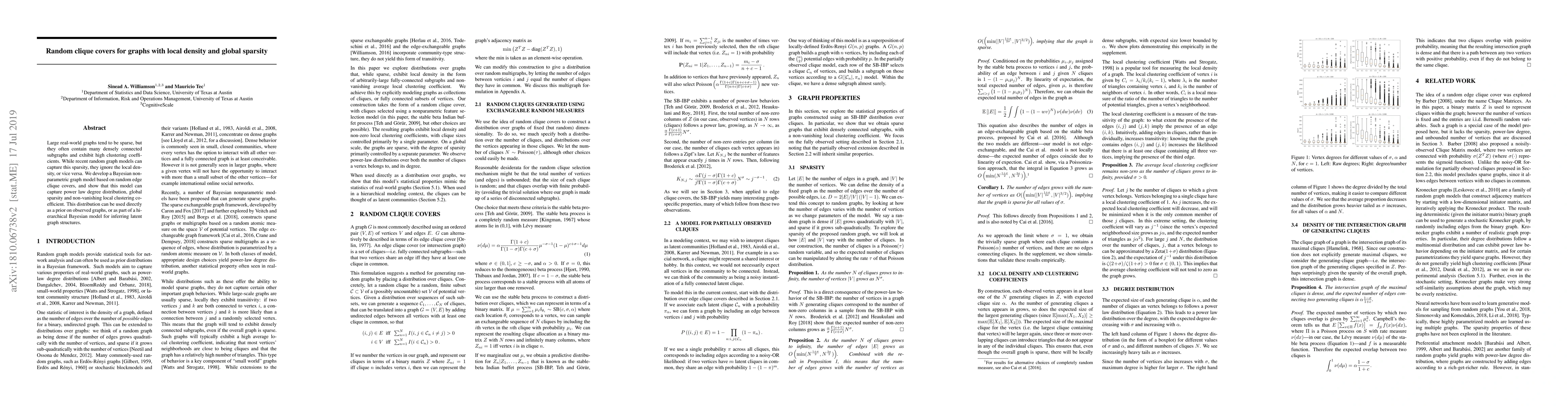 The research introduces a Bayesian nonparametric graph model based on random edge clique covers, which captures power law degree distribution, global sparsity, and non-vanishing local clustering coefficient in large real-world graphs with local density and global sparsity.