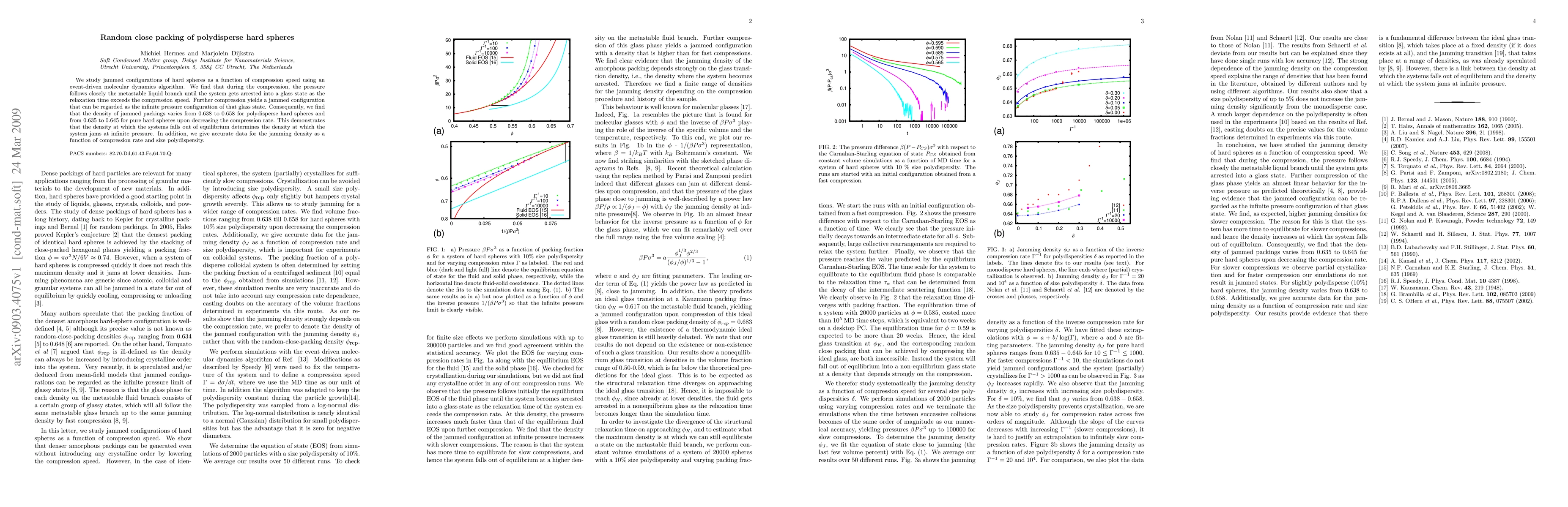 This research investigates jammed configurations of polydisperse and pure hard spheres under varying compression speeds using molecular dynamics. The study finds that the jamming density ranges from 0.638 to 0.658 for polydisperse spheres and 0.635 to 0.645 for pure spheres, influenced by the compression rate, indicating density determination by out-of-equilibrium conditions.