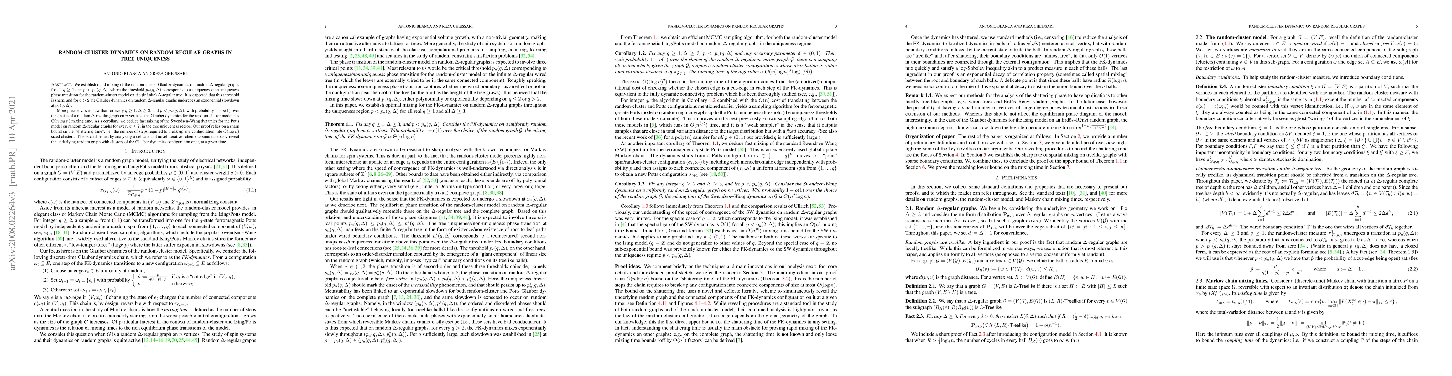 The paper establishes that the random-cluster Glauber dynamics on random regular graphs has a fast mixing time of $ heta(n ext{ log } n)$ for $q ext{-}regularity$ and $p<p_u(q, ext{Σ})$, where $p_u(q, ext{Σ})$ is the threshold for tree uniqueness.