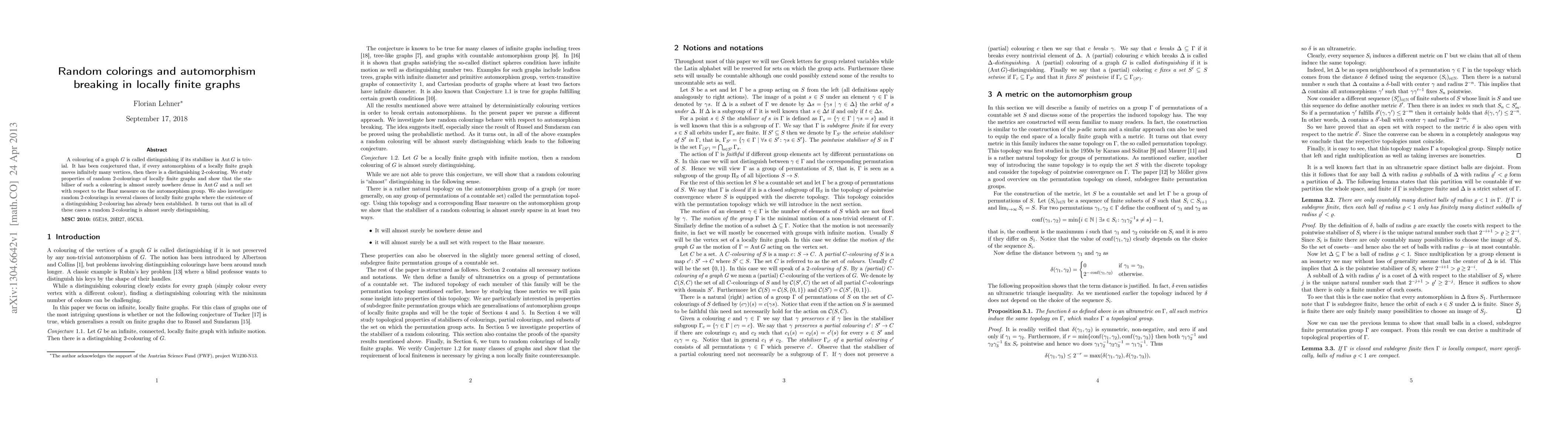 This paper examines random 2-colourings of locally finite graphs, demonstrating that such colourings almost surely break automorphisms and have nowhere dense stabilisers. It further shows that in known classes where distinguishing 2-colourings exist, random 2-colourings are almost certainly distinguishing.