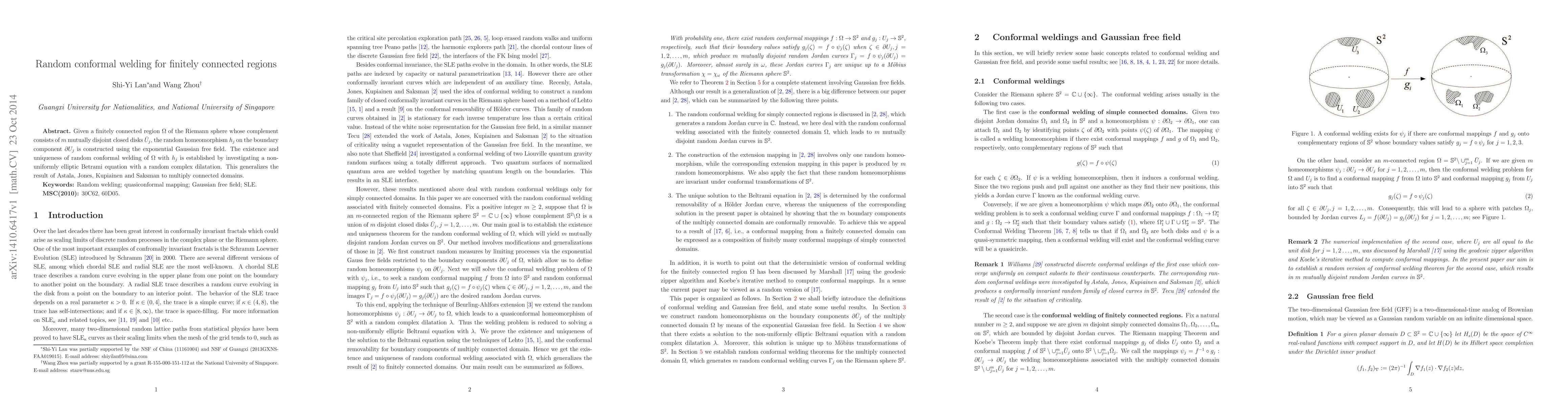 This paper constructs random homeomorphisms on the boundary components of a finitely connected region using the exponential Gaussian free field, establishing the existence and uniqueness of random conformal welding through a non-uniformly elliptic Beltrami equation with a random complex dilatation, generalizing previous results for multiply connected domains.