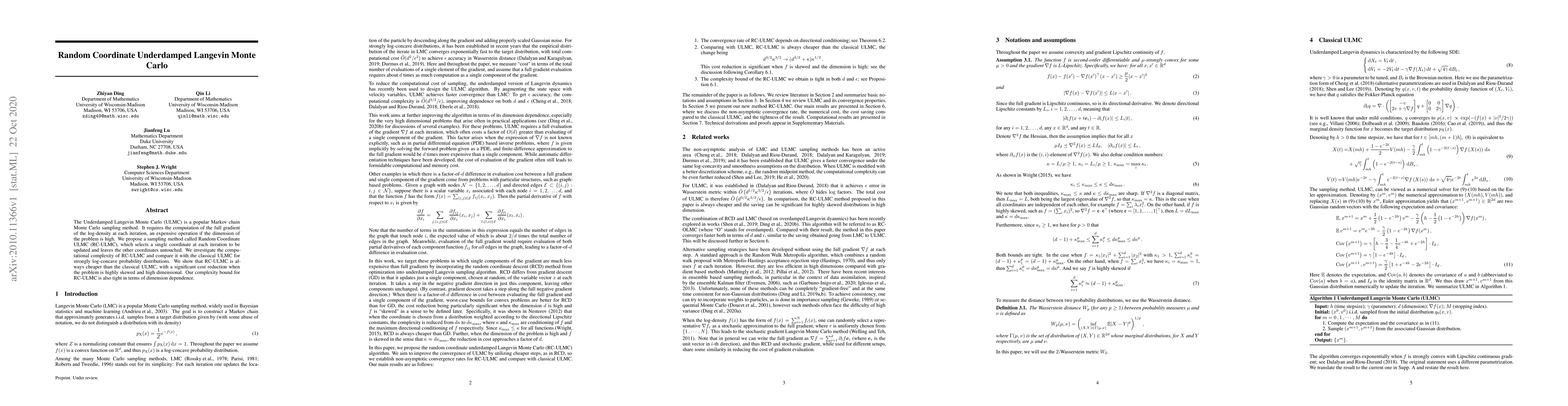 The paper proposes Random Coordinate Underdamped Langevin Monte Carlo (RC-ULMC), a method that updates only one coordinate per iteration, significantly reducing computational cost compared to the full gradient computation in classical ULMC, especially in high-dimensional and skewed distributions. The authors demonstrate that RC-ULMC has tighter dimension-dependent complexity bounds.