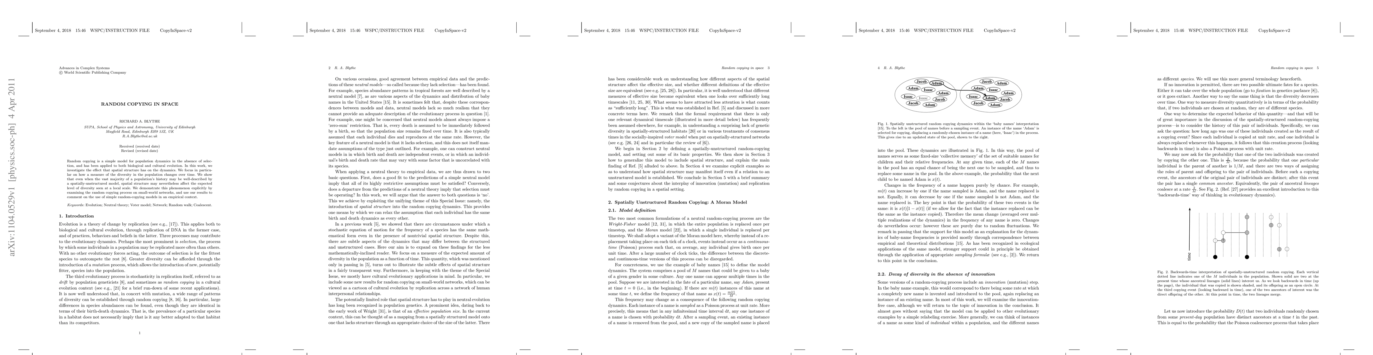 This paper explores the impact of spatial structure on random copying dynamics, demonstrating that while most population history aligns with unstructured models, spatial organization can influence local diversity levels. The study uses small-world networks to illustrate these effects and discusses implications for empirical applications of random-copying models.