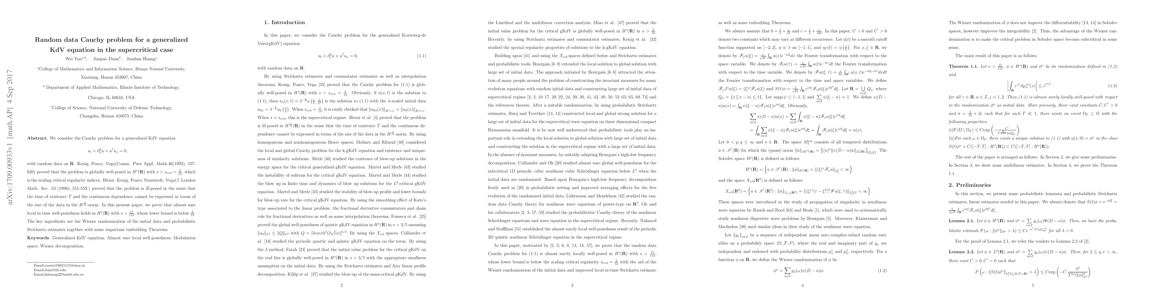 We consider the Cauchy problem for a generalized KdV equation \begin{eqnarray*} u_{t}+\partial_{x}^{3}u+u^{7}u_{x}=0, \end{eqnarray*} with random data on \R. Kenig, Ponce, Vega(Comm. Pure Appl. Math.46(1993), 527-620)proved that the problem is globally well-posed in H^{s}(\R)$ with s> s_{crit}=\frac{3}{14}, which is the scaling critical regularity indices. Birnir, Kenig, Ponce, Svanstedt, Vega(J. London Math. Soc. 53 (1996), 551-559.) proved that the problem is ill-posed in the sense that the time of existence T and the continuous dependence cannot be expressed in terms of the size of the data in the H^{\frac{3}{14}}-norm. In this present paper, we prove that almost sure local in time well-posedness holds in H^{s}(\R) with s>\frac{17}{112}, whose lower bound is below \frac{3}{14}. The key ingredients are the Wiener randomization of the initial data and probabilistic Strichartz estimates together with some important embedding Theorems.