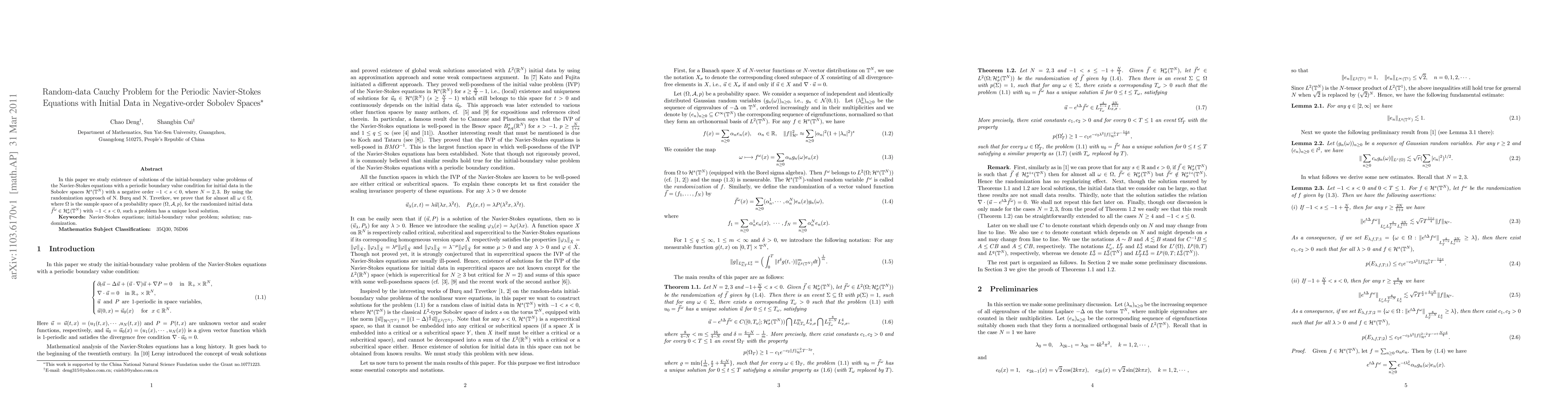 This paper investigates the existence of solutions for the periodic Navier-Stokes equations with initial data in negative-order Sobolev spaces. Utilizing a randomization approach, it proves the uniqueness of local solutions for almost all randomized initial data.