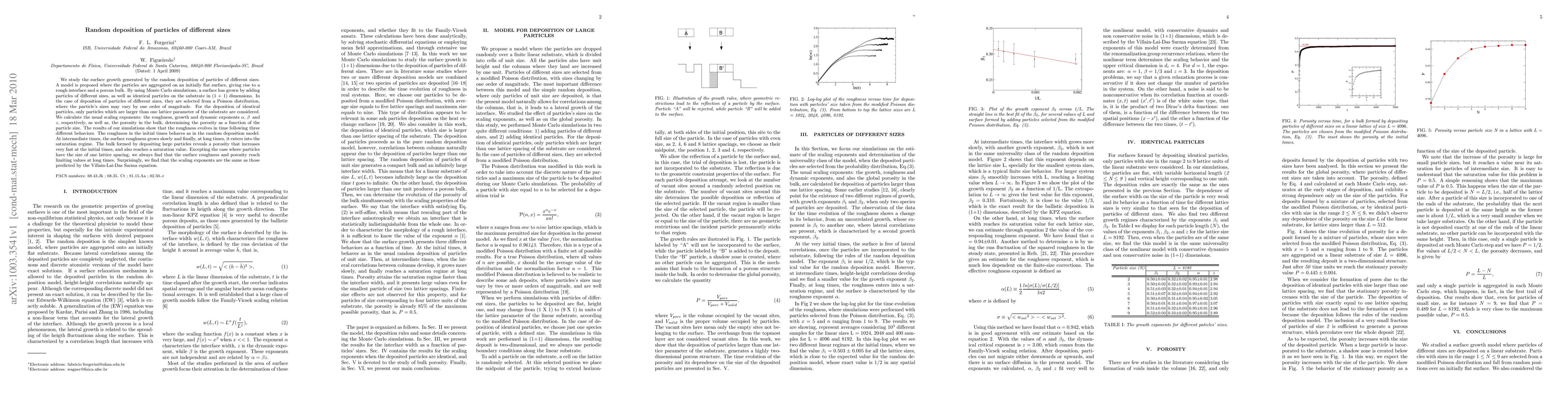 Researchers studied how particles of different sizes deposited on a surface grow into a rough interface and porous bulk, finding that the resulting scaling exponents match predictions from existing equations.