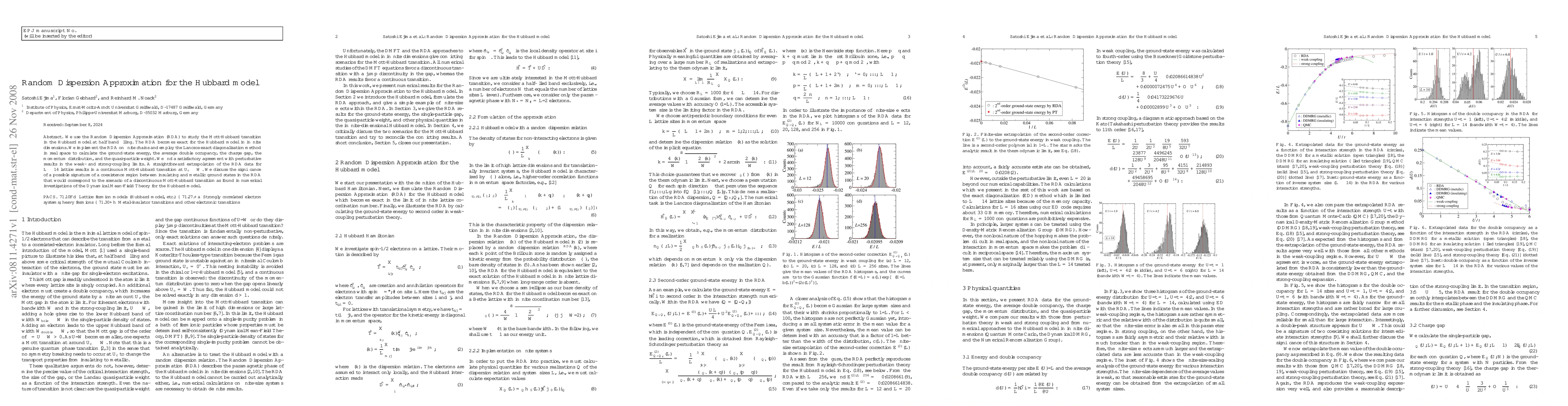 The Random Dispersion Approximation (RDA) is used to study the Mott-Hubbard transition in the Hubbard model, showing agreement with perturbative results and suggesting a continuous transition at $U_{\rm c}\approx W$. The RDA also hints at a coexistence region between insulating and metallic states, potentially indicating a discontinuous transition.