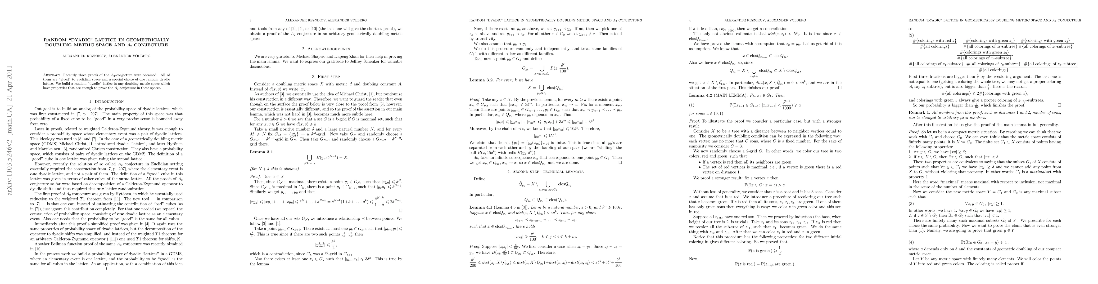 Recently three proofs of the $A_2$-conjecture were obtained. All of them are "glued" to euclidian space and a special choice of one random dyadic lattice. We build a random "dyadic" lattice in any doubling metric space which have properties that are enough to prove the $A_2$-conjecture in these spaces.