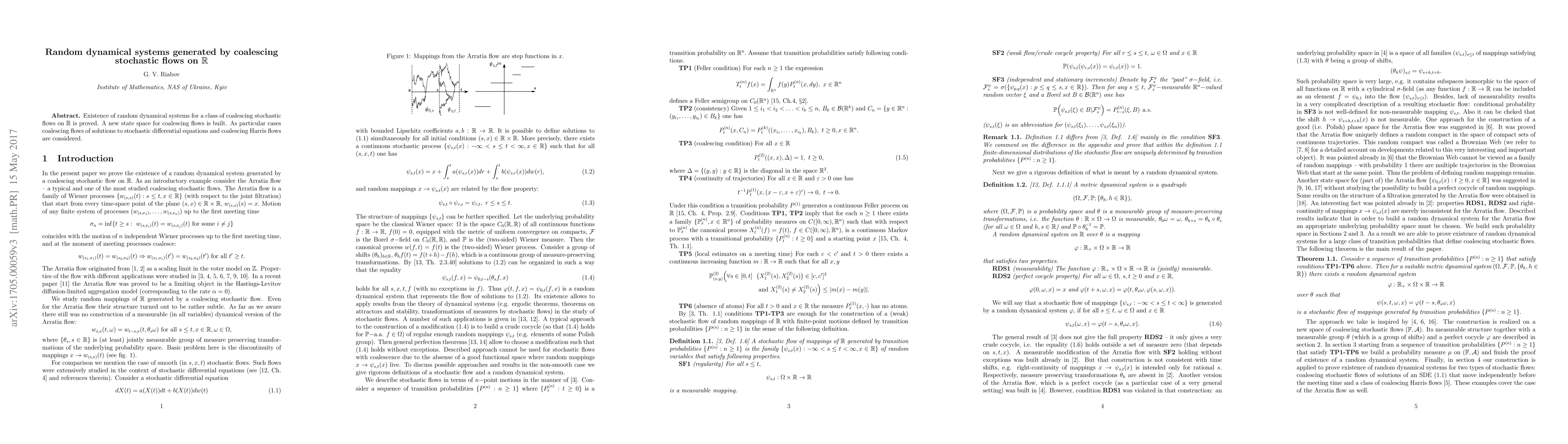 Existence of random dynamical systems for a class of coalescing stochastic flows on $\mathbb{R}$ is proved. A new state space for coalescing flows is built. As particular cases coalescing flows of solutions to stochastic differential equations independent before meeting time and coalescing Harris flows are considered.