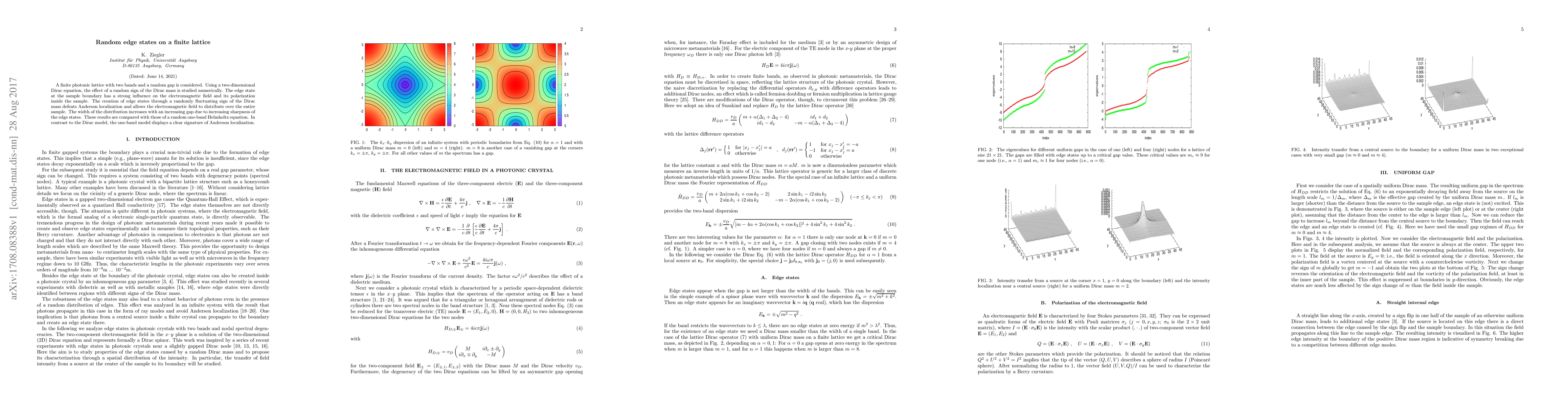 A finite photonic lattice with two bands and a random gap is considered. Using a two-dimensional Dirac equation, the effect of a random sign of the Dirac mass is studied numerically. The edge state at the sample boundary has a strong influence on the electromagnetic field and its polarization inside the sample. The creation of edge states through a randomly fluctuating sign of the Dirac mass defeats Anderson localization and allows the electromagnetic field to distribute over the entire sample. The width of the distribution increases with an increasing gap due to increasing sharpness of the edge states. These results are compared with those of a random one-band Helmholtz equation. In contrast to the Dirac model, the one-band model displays a clear signature of Anderson localization.