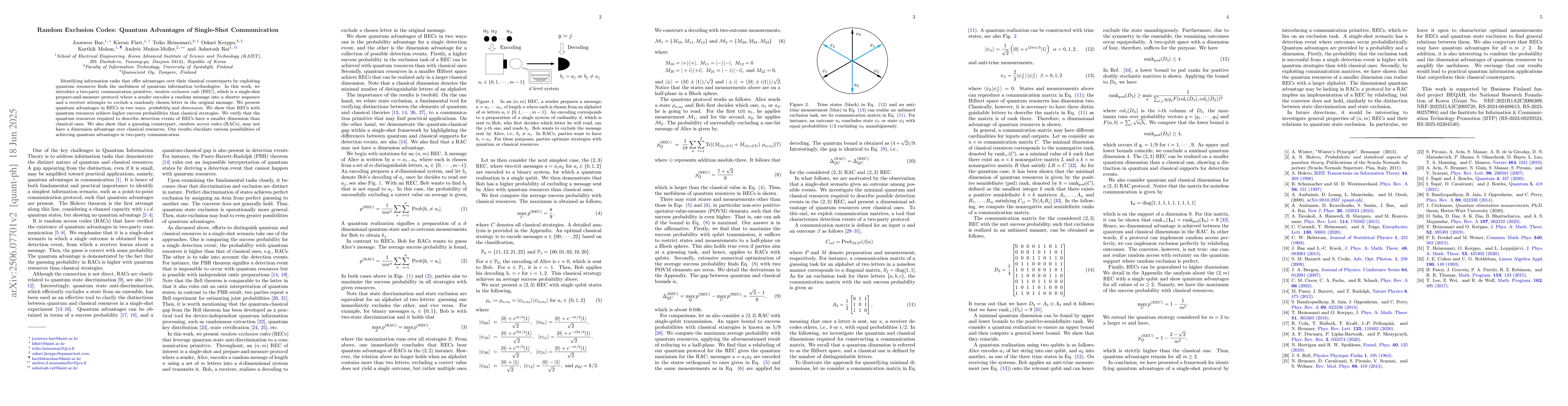 Researchers introduce a quantum communication primitive called Random Exclusion Code (REC), showing it achieves higher success probabilities than classical strategies and uses fewer resources to describe detection events.