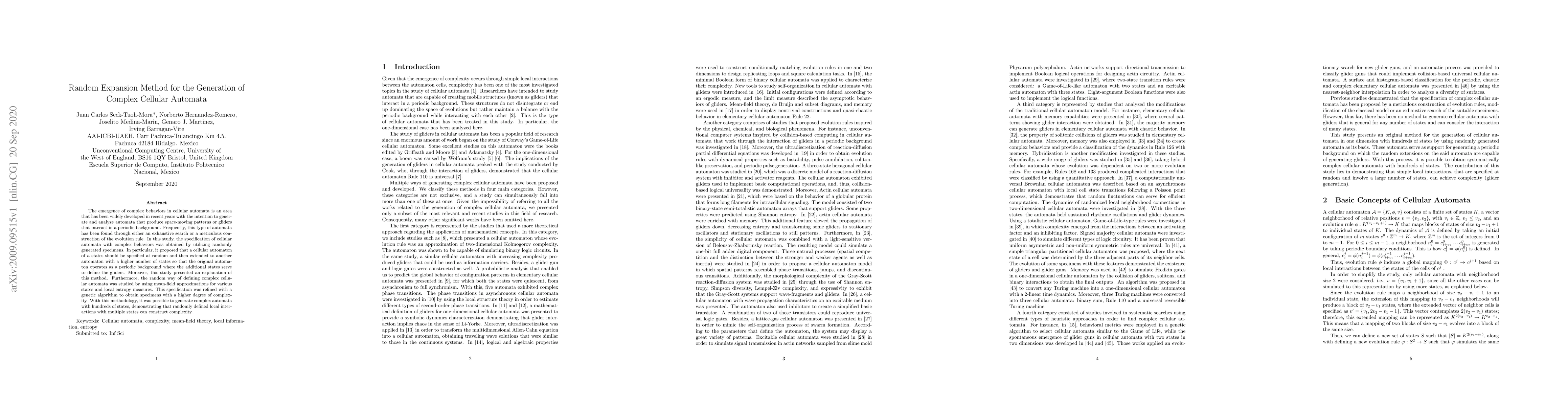 This paper introduces a Random Expansion Method for generating complex cellular automata by starting with randomly defined automata and extending them to higher states, where the original states form a periodic background and additional states define complex patterns. The method is refined using genetic algorithms and entropy measures to produce automata with hundreds of states.