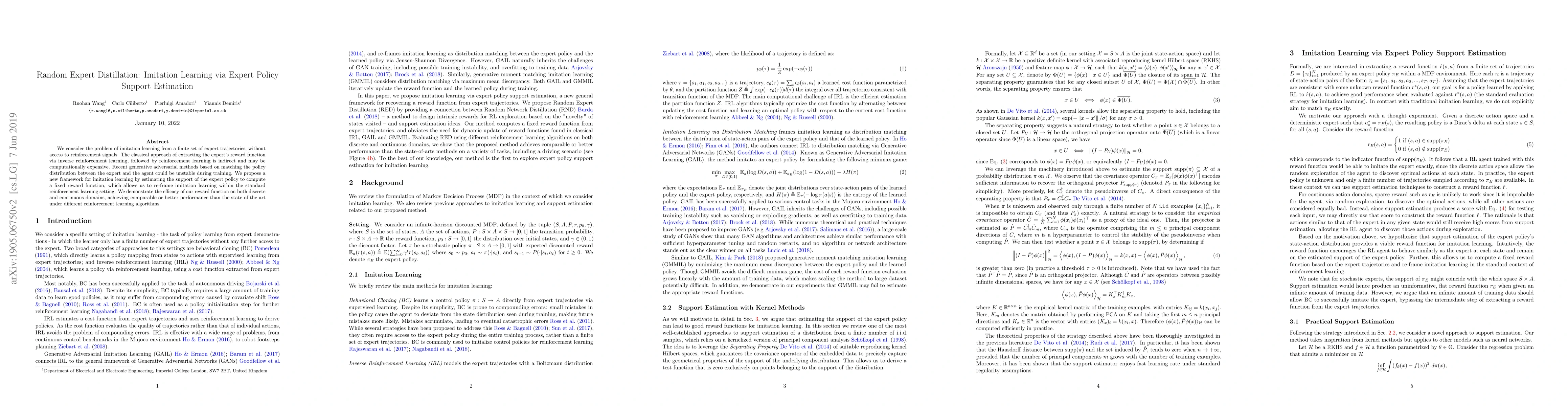 This paper proposes a novel framework for imitation learning by estimating the support of the expert policy to derive a fixed reward function, enabling imitation learning within standard reinforcement learning. The method achieves comparable or superior performance to state-of-the-art approaches in both discrete and continuous domains.