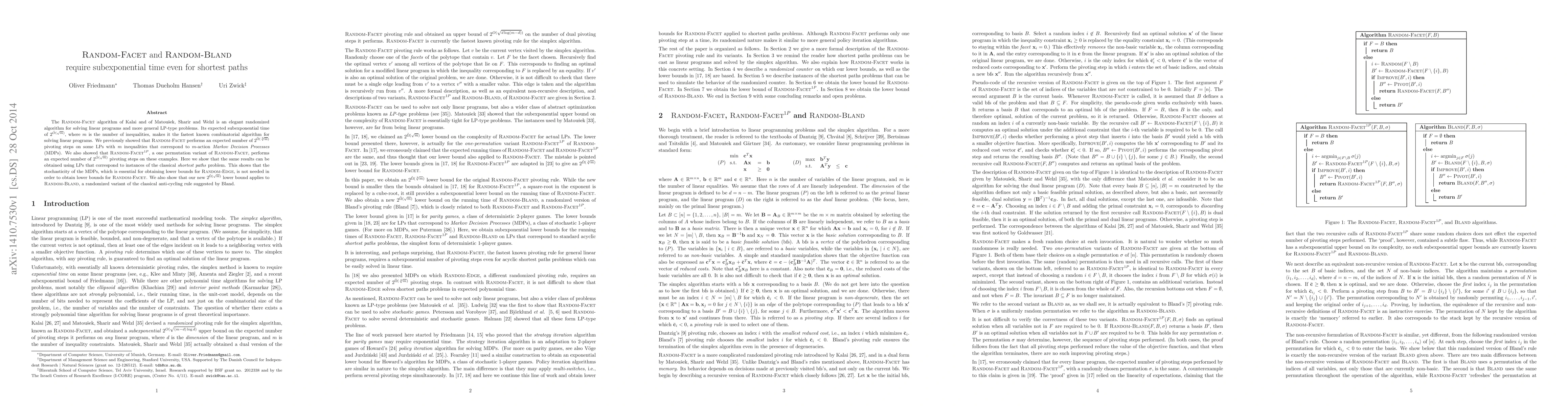 The Random-Facet algorithm of Kalai and of Matousek, Sharir and Welzl is an elegant randomized algorithm for solving linear programs and more general LP-type problems. Its expected subexponential time of $2^{\tilde{O}(\sqrt{m})}$, where $m$ is the number of inequalities, makes it the fastest known combinatorial algorithm for solving linear programs. We previously showed that Random-Facet performs an expected number of $2^{\tilde{\Omega}(\sqrt[3]{m})}$ pivoting steps on some LPs with $m$ inequalities that correspond to $m$-action Markov Decision Processes (MDPs). We also showed that Random-Facet-1P, a one permutation variant of Random-Facet, performs an expected number of $2^{\tilde{O}(\sqrt{m})}$ pivoting steps on these examples. Here we show that the same results can be obtained using LPs that correspond to instances of the classical shortest paths problem. This shows that the stochasticity of the MDPs, which is essential for obtaining lower bounds for Random-Edge, is not needed in order to obtain lower bounds for Random-Facet. We also show that our new $2^{\tilde{\Omega}(\sqrt{m})}$ lower bound applies to Random-Bland, a randomized variant of the classical anti-cycling rule suggested by Bland.