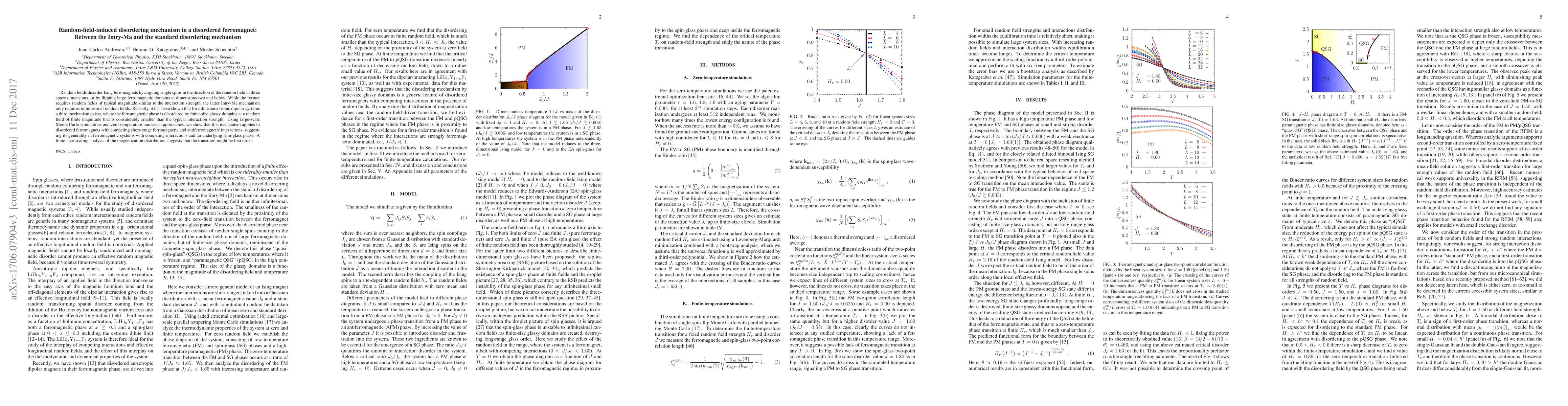 Random fields disorder Ising ferromagnets by aligning single spins in the direction of the random field in three space dimensions, or by flipping large ferromagnetic domains at dimensions two and below. While the former requires random fields of typical magnitude similar to the interaction strength, the latter Imry-Ma mechanism only requires infinitesimal random fields. Recently, it has been shown that for dilute anisotropic dipolar systems a third mechanism exists, where the ferromagnetic phase is disordered by finite-size glassy domains at a random field of finite magnitude that is considerably smaller than the typical interaction strength. Using large-scale Monte Carlo simulations and zero-temperature numerical approaches, we show that this mechanism applies to disordered ferromagnets with competing short-range ferromagnetic and antiferromagnetic interactions, suggesting its generality in ferromagnetic systems with competing interactions and an underlying spin-glass phase. A finite-size-scaling analysis of the magnetization distribution suggests that the transition might be first order.