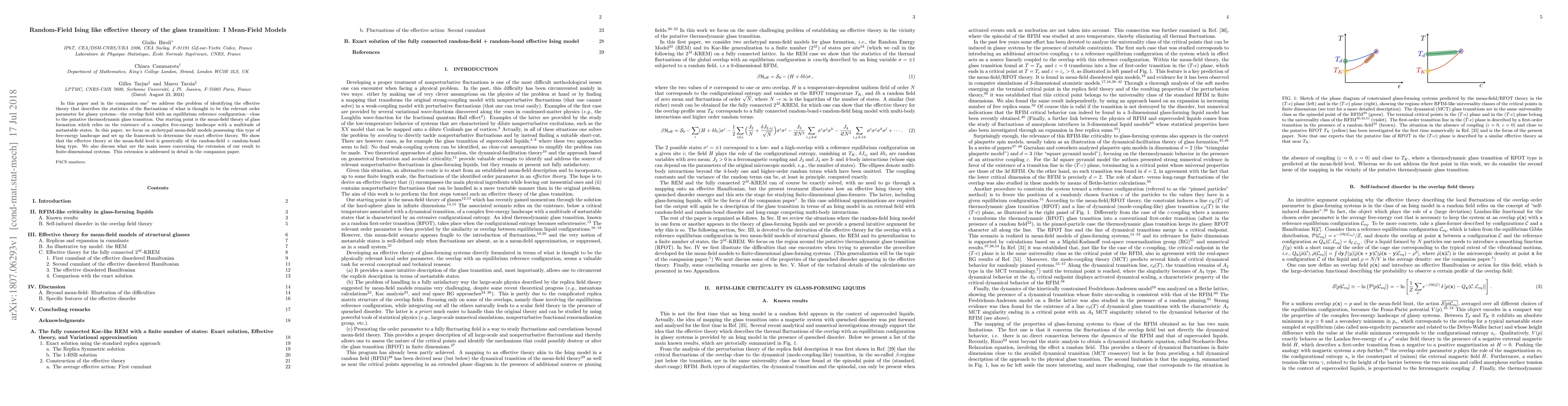This paper establishes the framework for identifying the effective theory describing the fluctuations near the glass transition, focusing on mean-field models with complex free-energy landscapes. It demonstrates that the effective theory at mean-field level resembles a random-field + random-bond Ising model, setting the stage for further exploration in finite-dimensional systems.