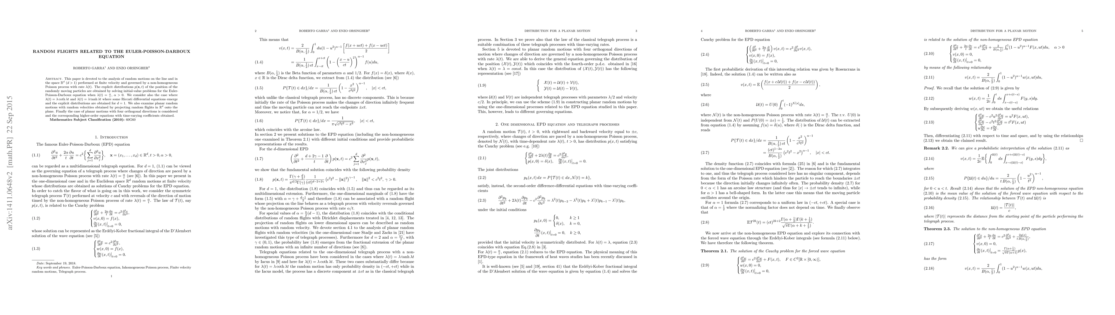 This paper is devoted to the analysis of random motions on the line and in the space R^d (d > 1) performed at finite velocity and governed by a non-homogeneous Poisson process with rate \lambda(t). The explicit distributions p(x,t) of the position of the randomly moving particles are obtained solving initial-value problems for the Euler- Poisson-Darboux equation when \lambda(t) = \alpha/t, t > 0. We consider also the case where \lambda(t) = \lambda coth \lambda t and \lambda(t) = \lambda tanh \lambda t, where some Riccati differential equations emerge and the explicit distributions are obtained for d = 1. We also examine planar random motions with random velocities by projecting random flights in R^d onto the plane. Finally the case of planar motions with four orthogonal directions is considered and the corresponding higher-order equations with time-varying coefficients obtained.
