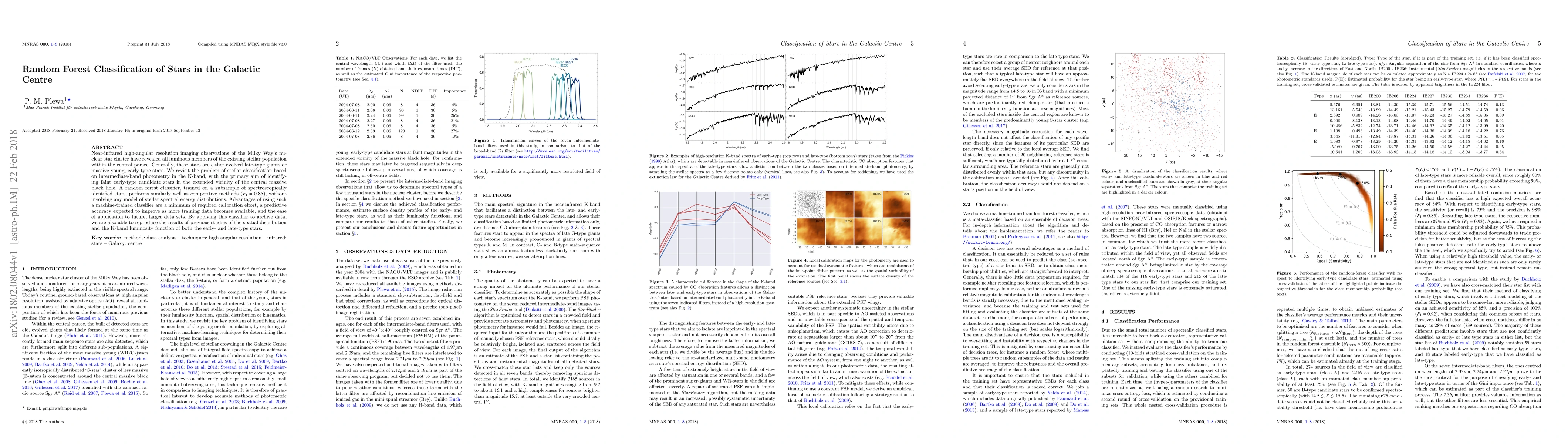 This research applies a Random Forest classifier to identify stars in the Milky Way's central parsec, distinguishing between evolved late-type giants and massive young early-type stars using K-band photometry. The method shows high accuracy (F1=0.85) with minimal calibration, and it can be improved with more data. The classifier accurately reproduces past study results on star distribution and luminosity function.