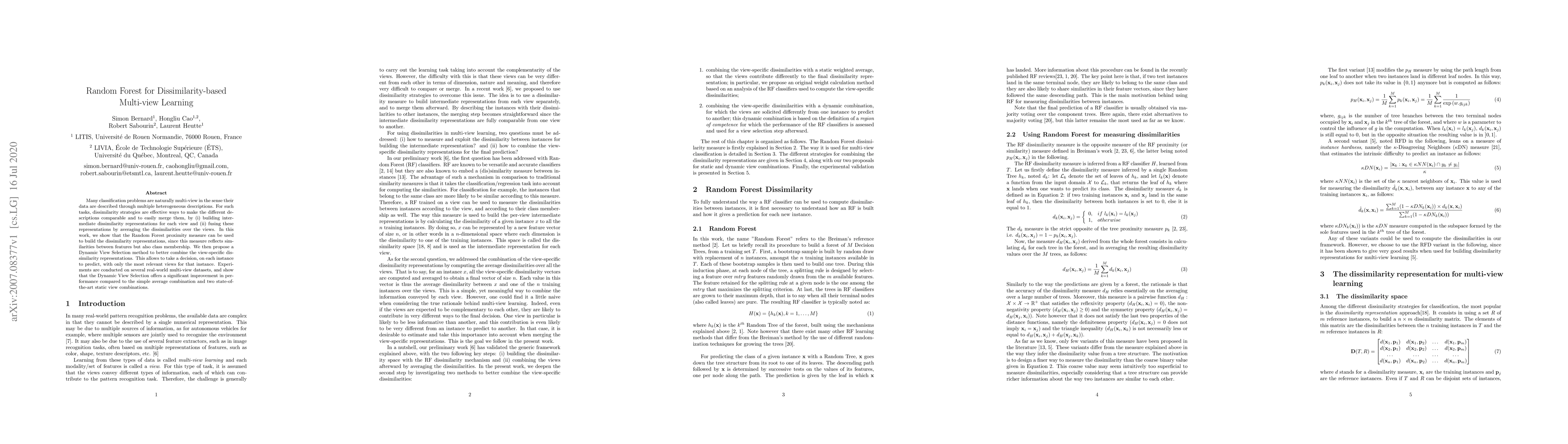 This research paper proposes using a Random Forest proximity measure to build dissimilarity representations for multi-view learning, achieving better performance than average combination and state-of-the-art methods.