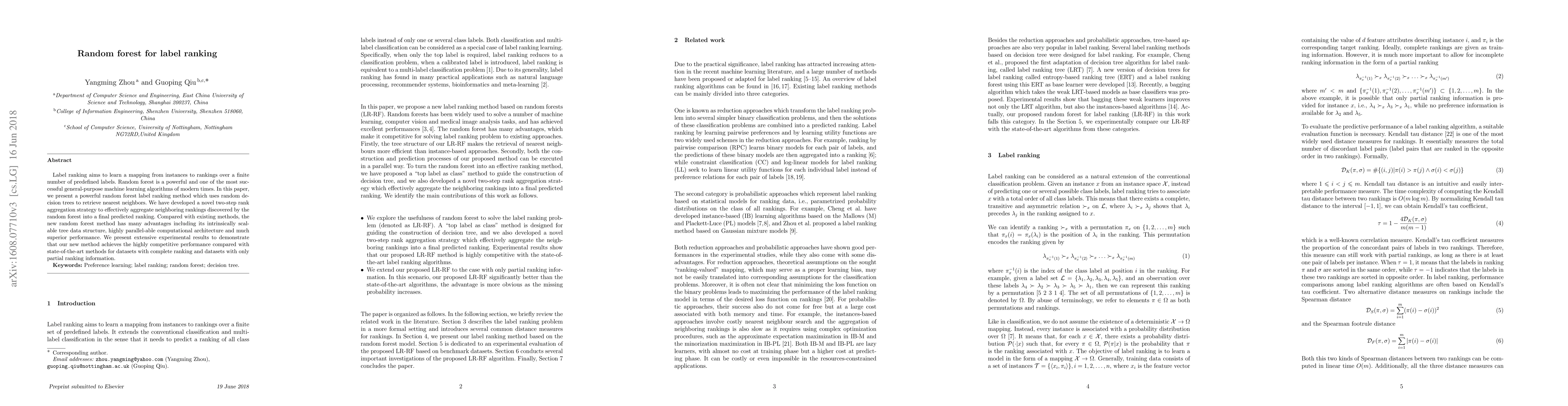 The research presents a novel label ranking method based on Random Forest (LR-RF), utilizing random decision trees to retrieve nearest neighbors and a two-step rank aggregation strategy to aggregate neighboring rankings.