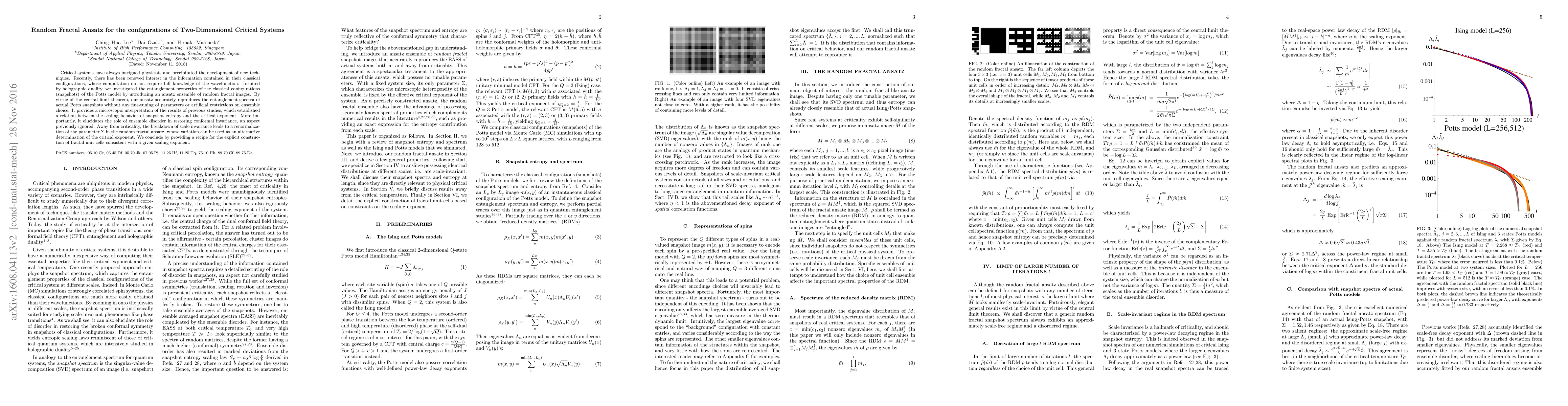 Critical systems have always intrigued physicists and precipitated the development of new techniques. Recently, there has been renewed interest in the information contained in their classical configurations, whose computation do not require full knowledge of the wavefunction. Inspired by holographic duality, we investigated the entanglement properties of the classical configurations (snapshots) of the Potts model by introducing an ansatz ensemble of random fractal images. By virtue of the central limit theorem, our ansatz accurately reproduces the entanglement spectra of actual Potts snapshots without any fine-tuning of parameters or artificial restrictions on ensemble choice. It provides a microscopic interpretation of the results of previous studies, which established a relation between the scaling behavior of snapshot entropy and the critical exponent. More importantly, it elucidates the role of ensemble disorder in restoring conformal invariance, an aspect previously ignored. Away from criticality, the breakdown of scale invariance leads to a renormalization of the parameter $\Sigma$ in the random fractal ansatz, whose variation can be used as an alternative determination of the critical exponent. We conclude by providing a recipe for the explicit construction of fractal unit cells consistent with a given scaling exponent.