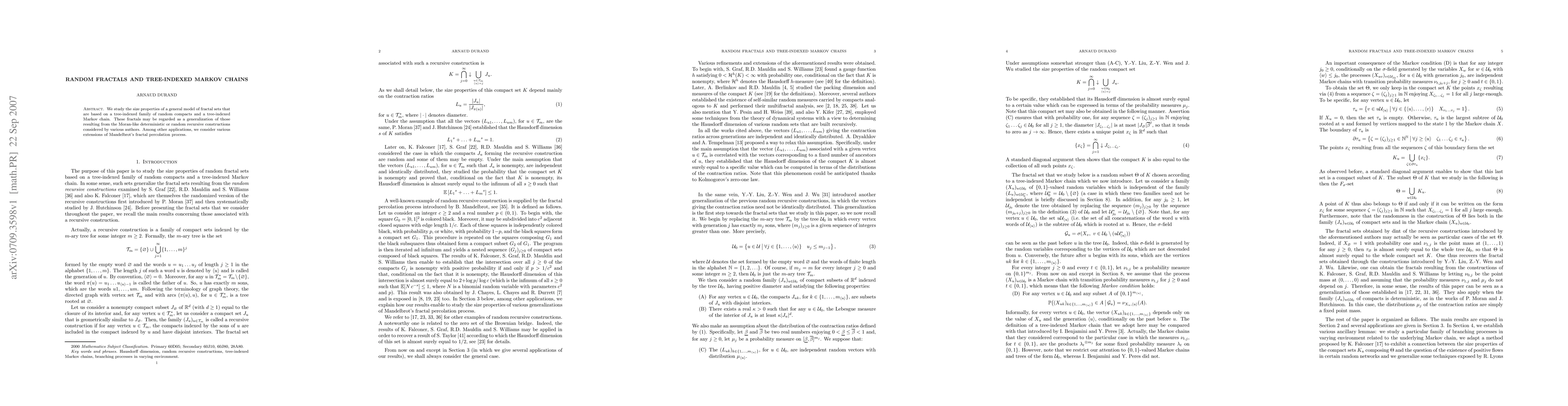 This paper investigates the size properties of fractal sets generated by a tree-indexed family of random compacts and a tree-indexed Markov chain, extending traditional Moran-like constructions. It also explores applications of these fractals, including extensions of Mandelbrot's fractal percolation process.