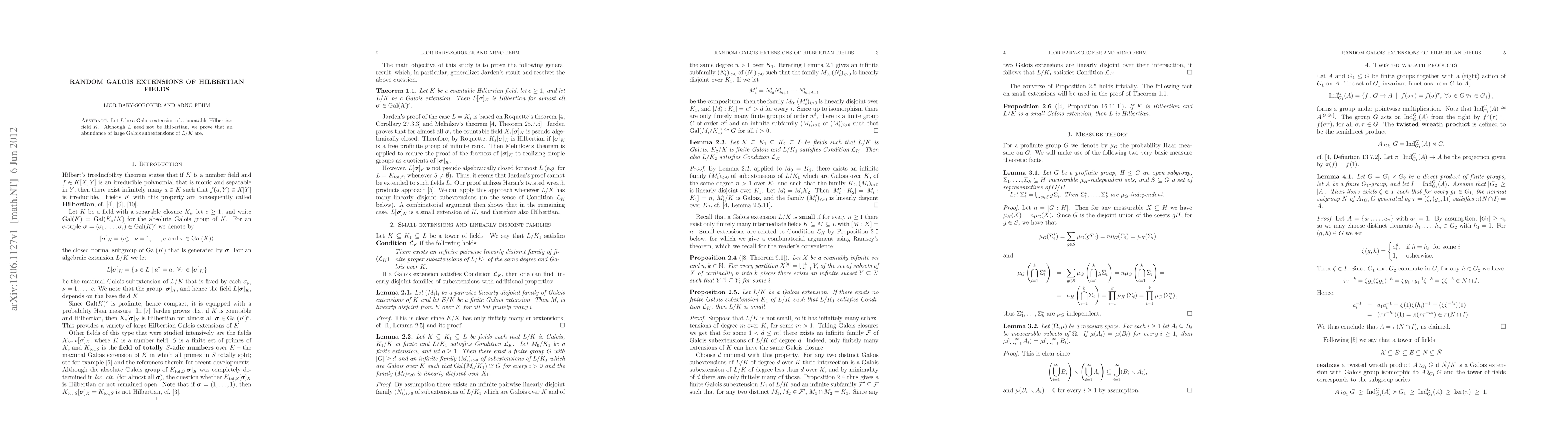 Let L be a Galois extension of a countable Hilbertian field K. Although L need not be Hilbertian, we prove that an abundance of large Galois subextensions of L/K are.