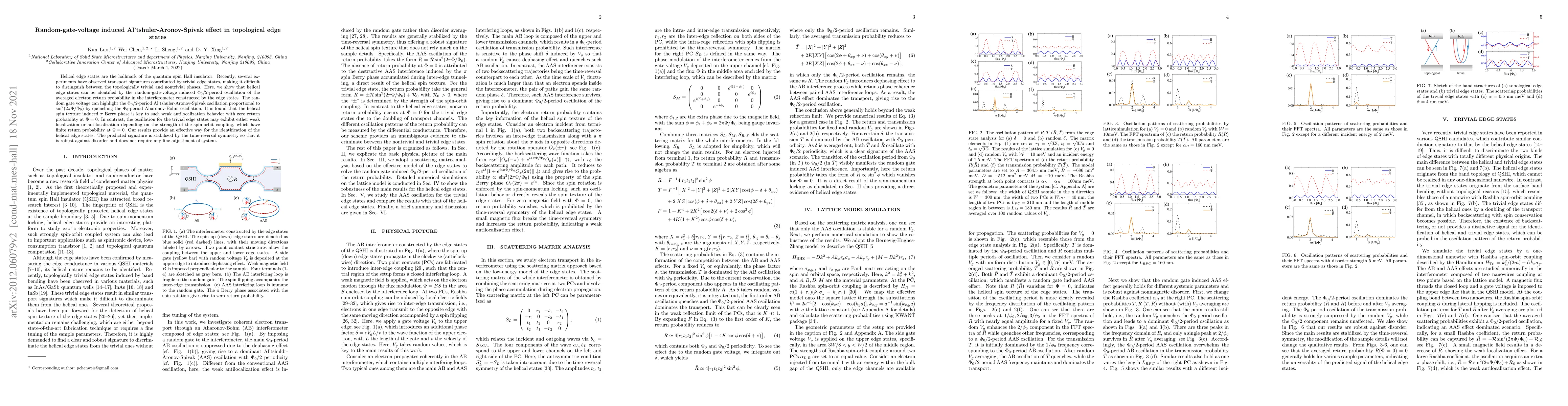 This paper demonstrates that random-gate-voltage induced $\Phi_0/2$-period oscillations in the averaged electron return probability can identify helical edge states in quantum spin Hall insulators, distinguishing them from trivial edge states. The key feature is the $\pi$ Berry phase due to helical spin texture, leading to zero return probability at $\Phi=0$, contrasting with trivial states that exhibit finite return probability.