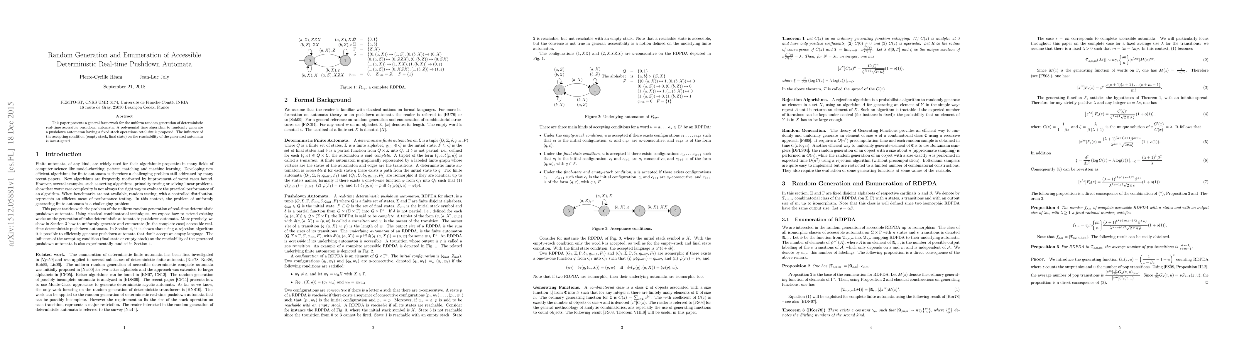 This paper introduces a framework for uniformly generating deterministic real-time accessible pushdown automata, along with a polynomial time algorithm for creating such automata of a specified size, and examines how different acceptance conditions affect automaton reachability.