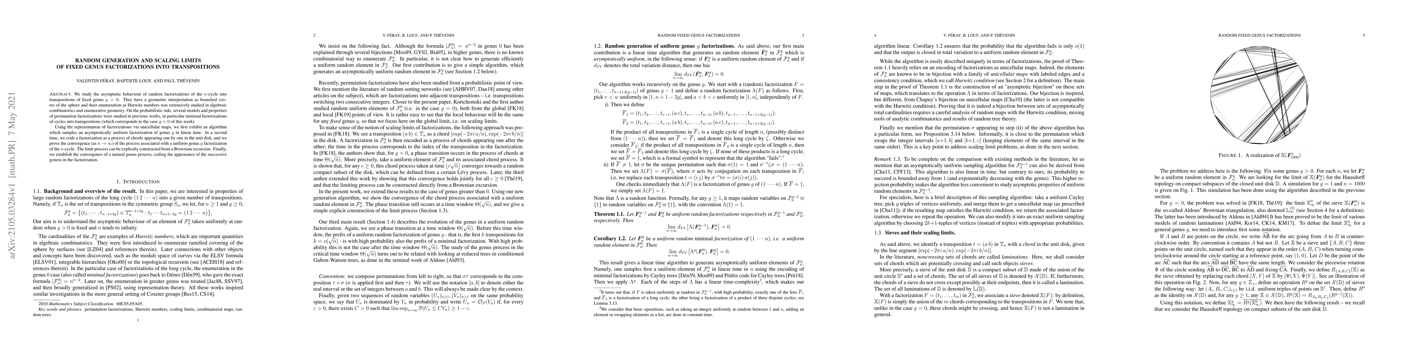 This paper investigates the asymptotic behavior of random factorizations of an $n$-cycle into transpositions of fixed genus $g>0$, revealing their geometric interpretation as branched covers of the sphere. The authors develop an algorithm for linear-time sampling of uniform genus $g$ factorizations and prove the convergence of these factorizations to a limit process derived from a Brownian excursion.