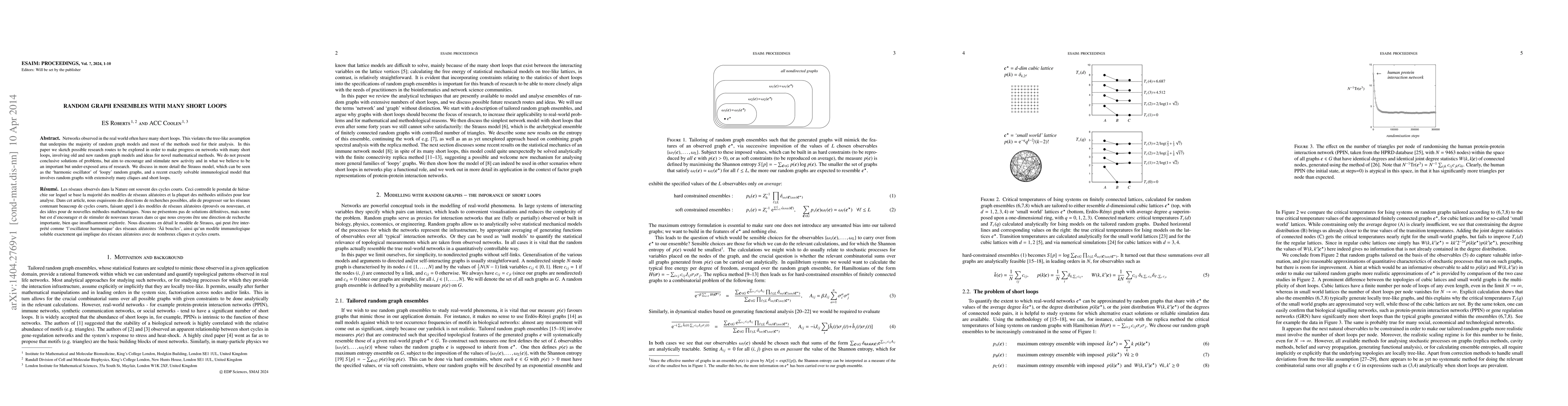 Networks observed in the real world often have many short loops. This violates the tree-like assumption that underpins the majority of random graph models and most of the methods used for their analysis. In this paper we sketch possible research routes to be explored in order to make progress on networks with many short loops, involving old and new random graph models and ideas for novel mathematical methods. We do not present conclusive solutions of problems, but aim to encourage and stimulate new activity and in what we believe to be an important but under-exposed area of research. We discuss in more detail the Strauss model, which can be seen as the `harmonic oscillator' of `loopy' random graphs, and a recent exactly solvable immunological model that involves random graphs with extensively many cliques and short loops.
