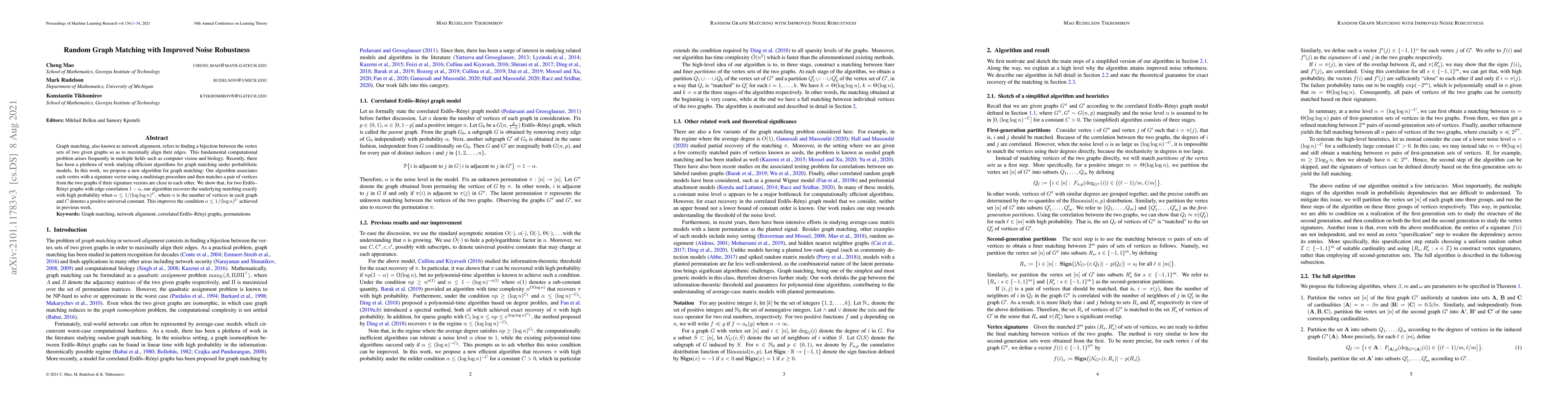 Researchers developed a new algorithm for graph matching that improves noise robustness, outperforming previous work with a more relaxed condition on edge correlation, allowing for exact recovery of underlying matchings in high-probability cases.