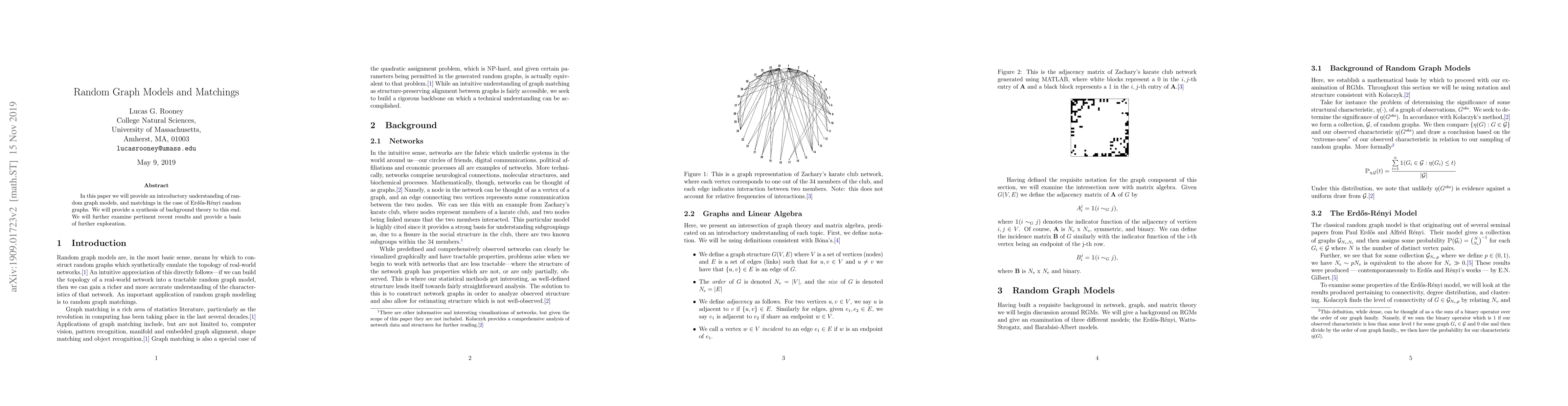 In this paper we will provide an introductory understanding of random graph models, and matchings in the case of Erdos-Renyi random graphs. We will provide a synthesis of background theory to this end. We will further examine pertinent recent results and provide a basis of further exploration.